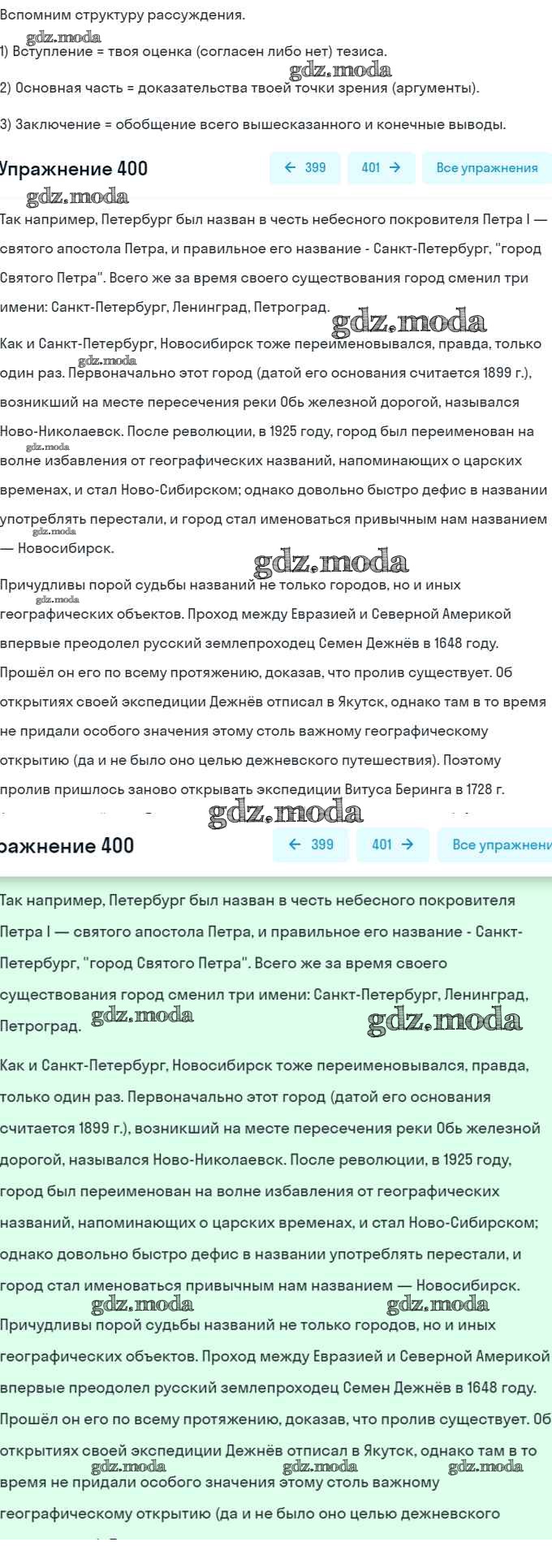 ОТВЕТ на задание № 400 Учебник по Русскому языку 5 класс Баранов