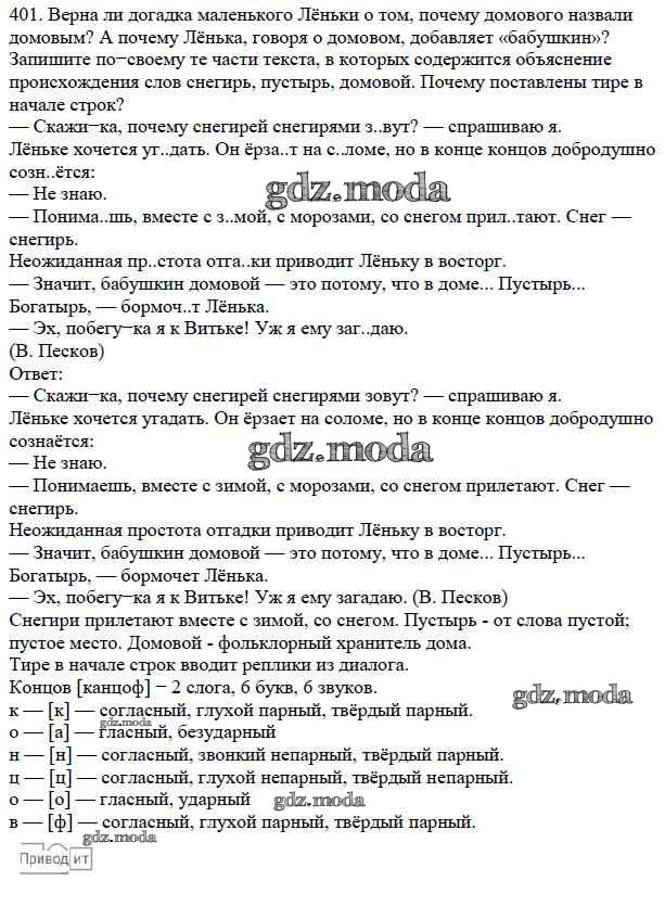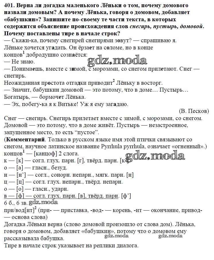 ОТВЕТ на задание № 401 Учебник по Русскому языку 5 класс Баранов