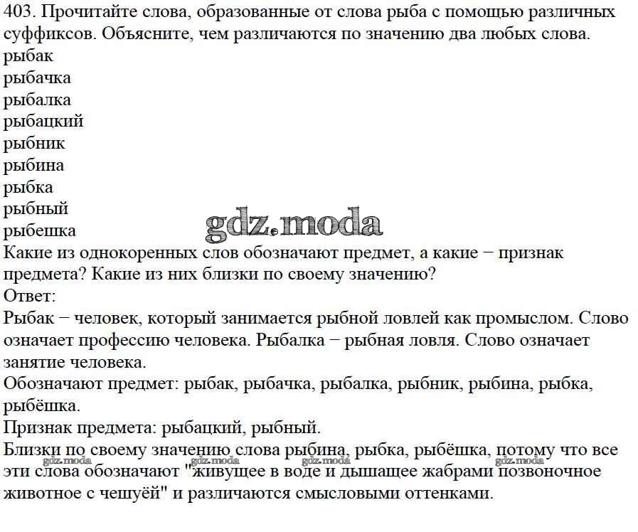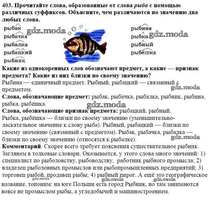 ОТВЕТ на задание № 403 Учебник по Русскому языку 5 класс Баранов