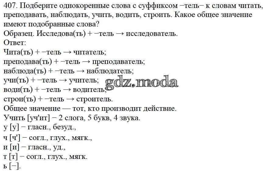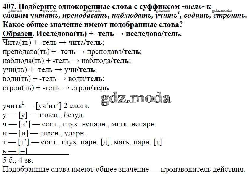 ОТВЕТ на задание № 407 Учебник по Русскому языку 5 класс Баранов