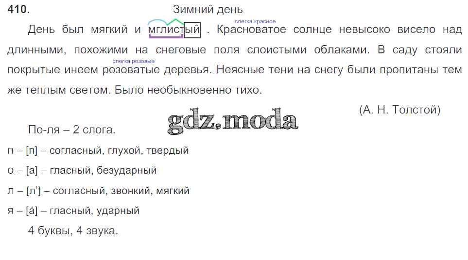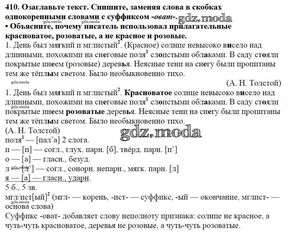 ОТВЕТ на задание № 410 Учебник по Русскому языку 5 класс Баранов