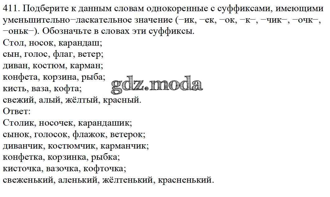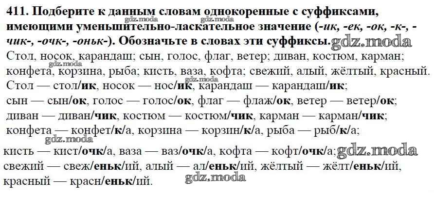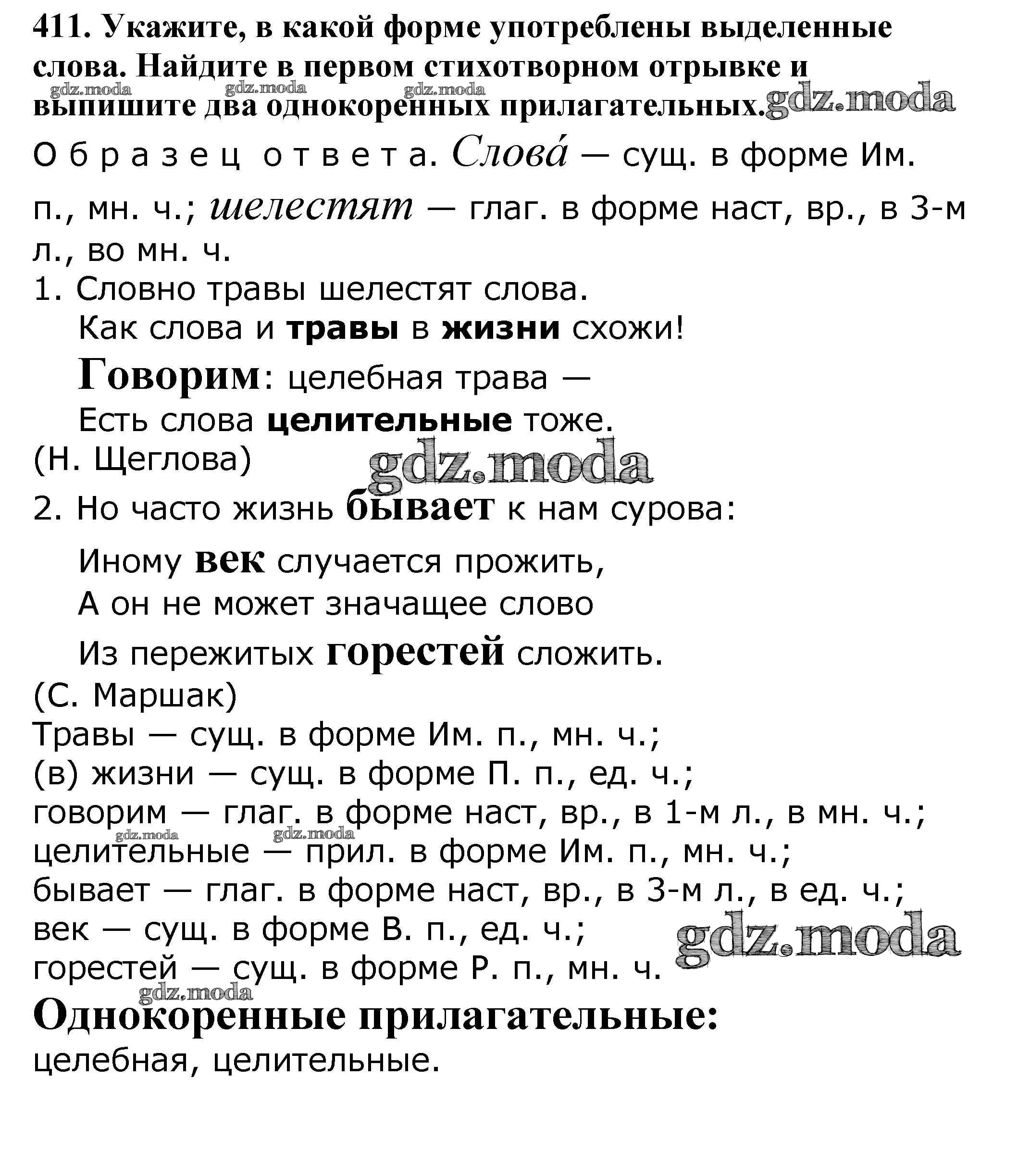 ОТВЕТ на задание № 411 Учебник по Русскому языку 5 класс Баранов
