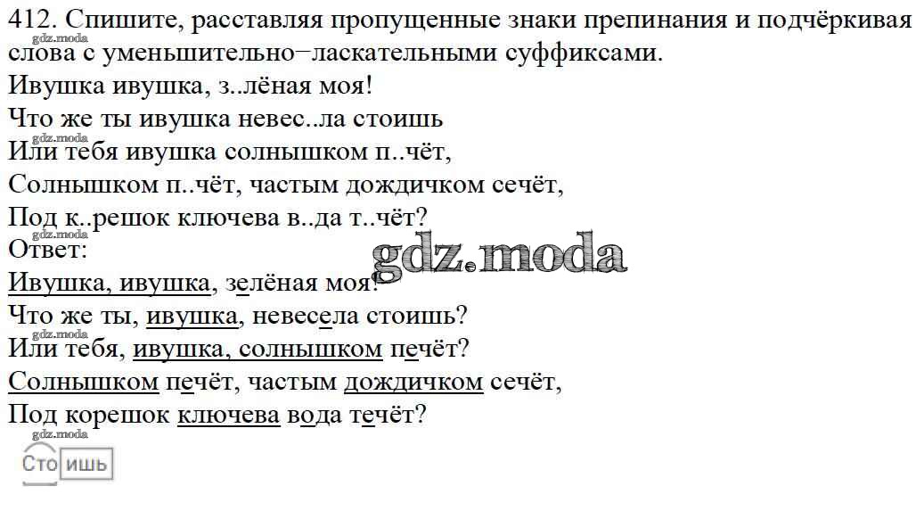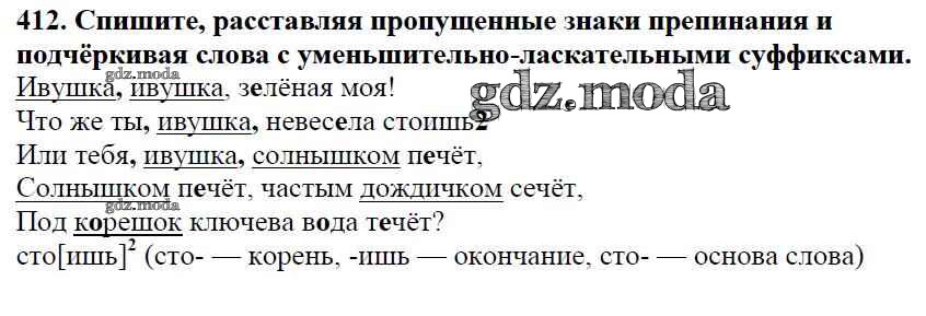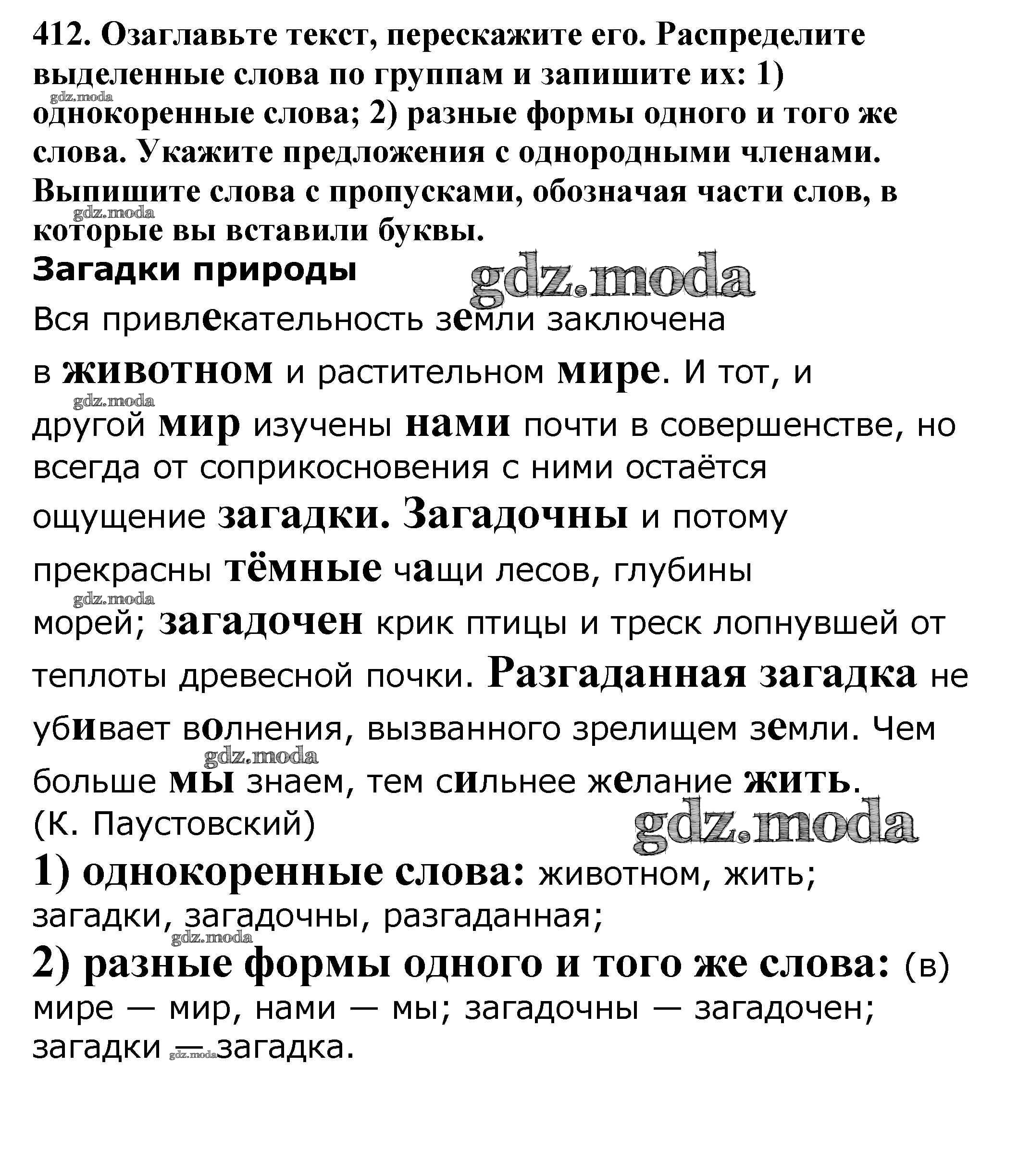 ОТВЕТ на задание № 412 Учебник по Русскому языку 5 класс Баранов