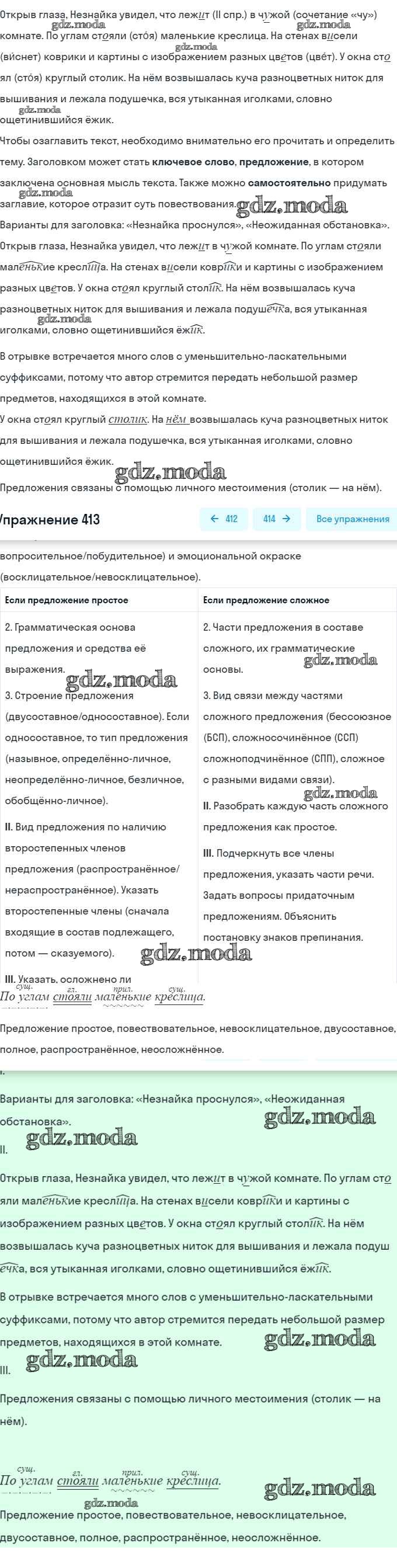 ГДЗ решение к заданию № 413 Русский язык 5 класс Ладыженская Т.А. Просвещение, Просвещение 2016, 2019 Часть 1, Часть 2 ФГОС бесплатно на гдз.мода!