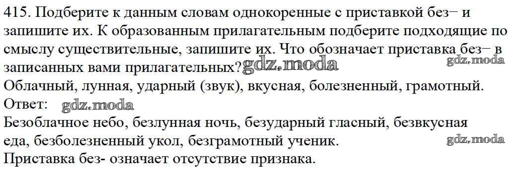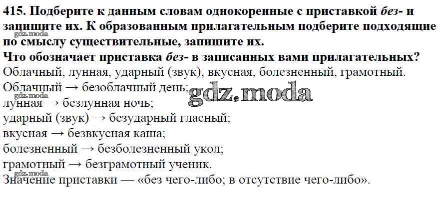 ОТВЕТ на задание № 415 Учебник по Русскому языку 5 класс Баранов