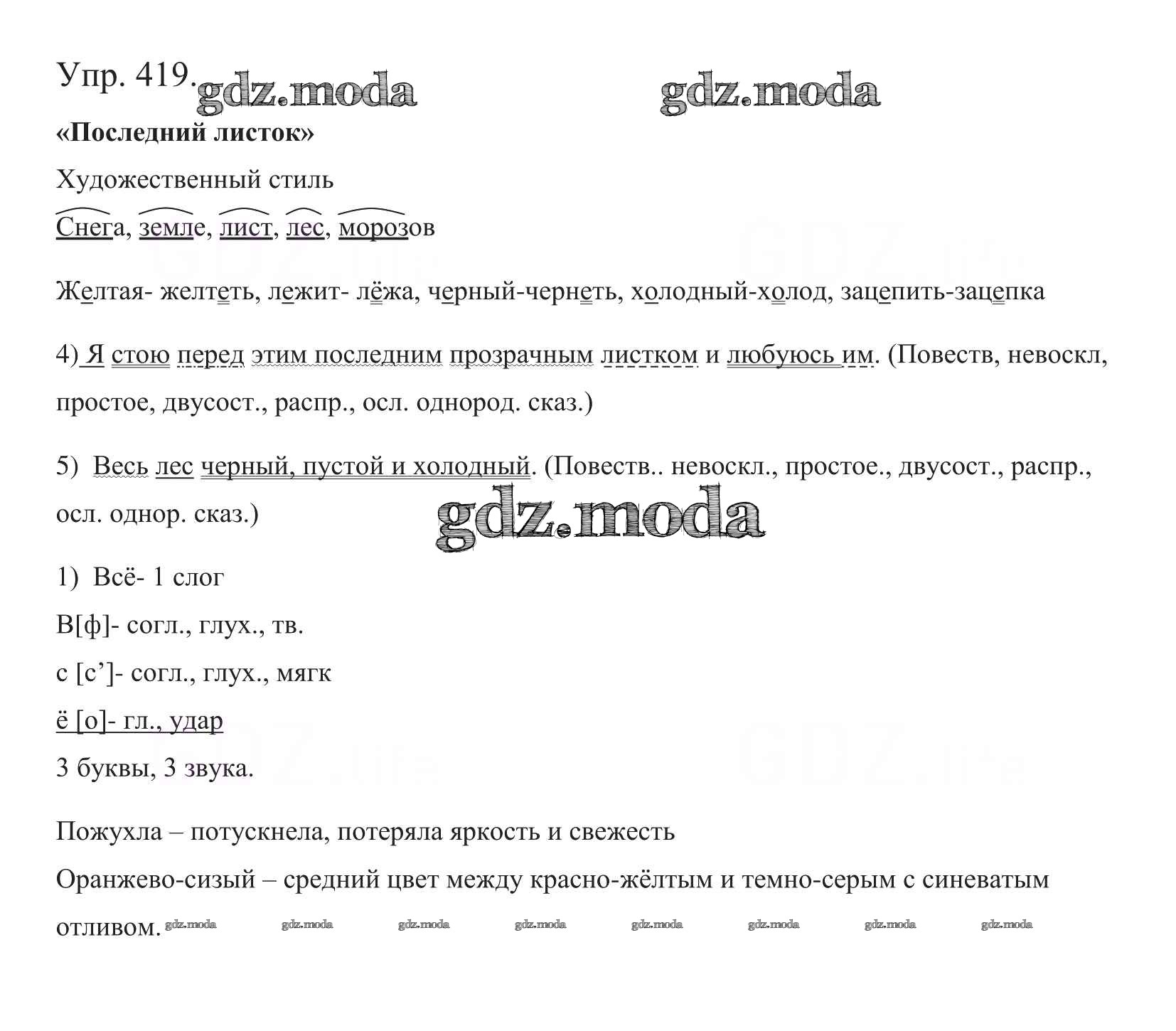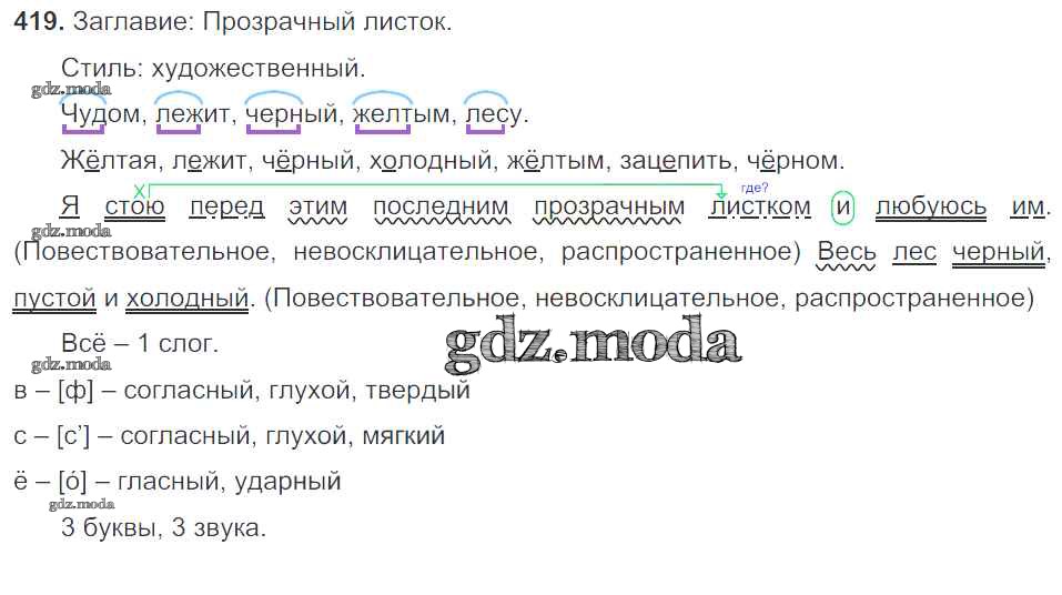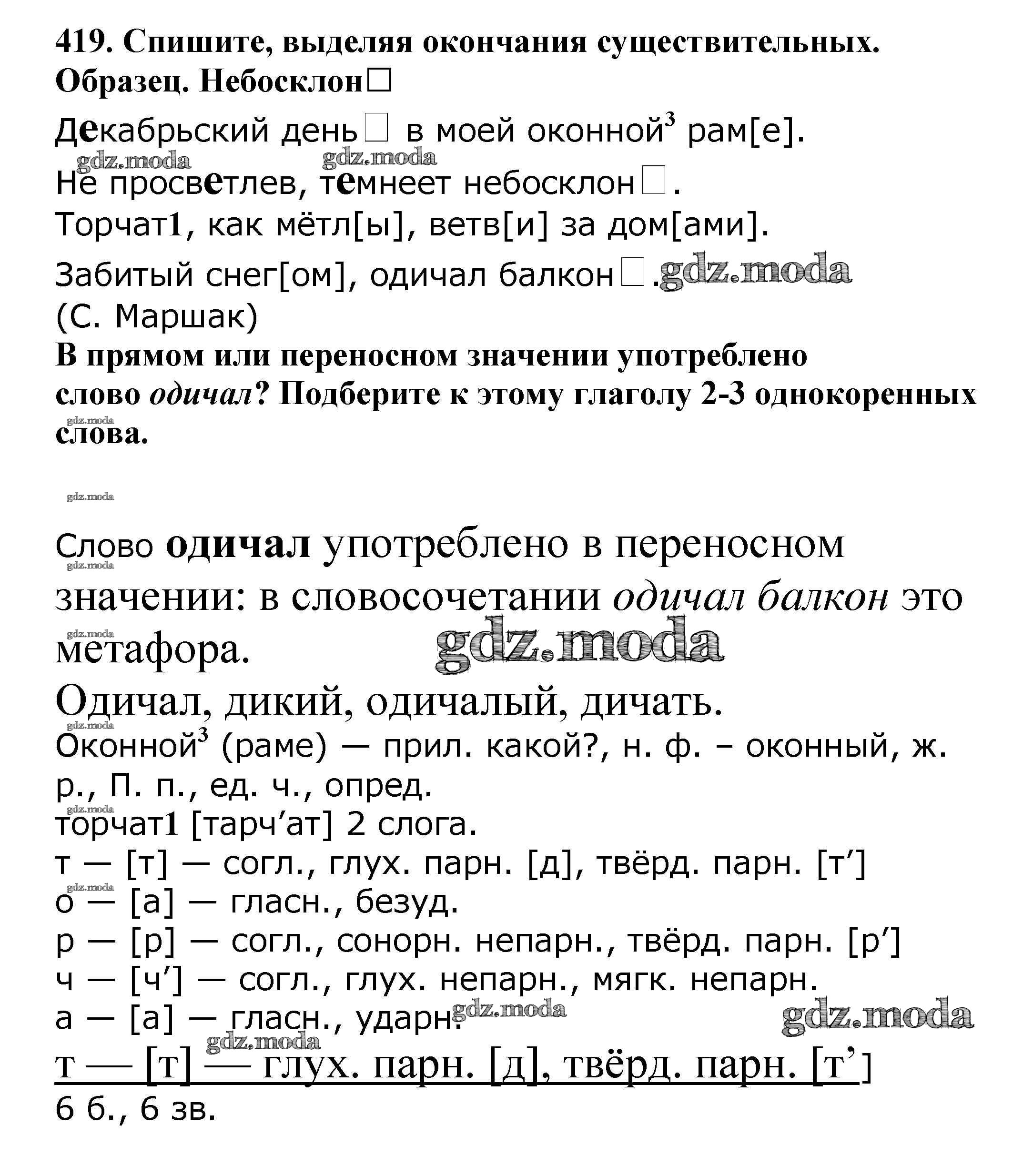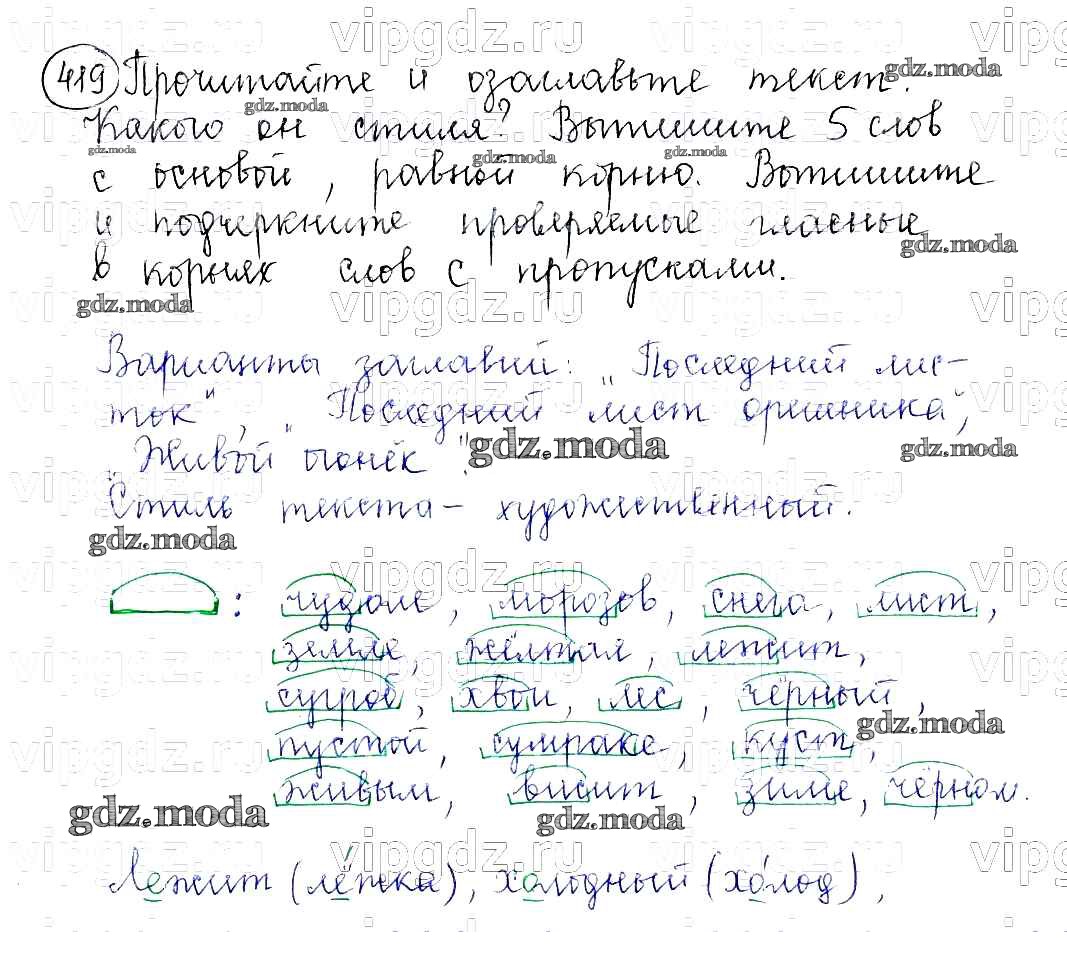 ОТВЕТ на задание № 419 Учебник по Русскому языку 5 класс Баранов