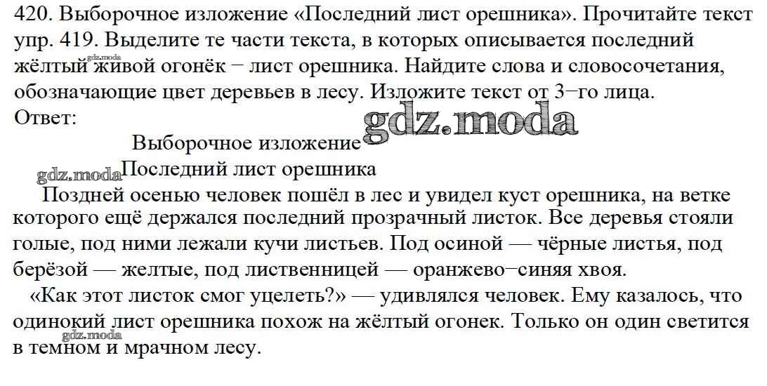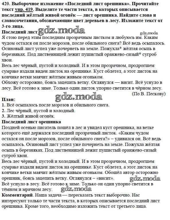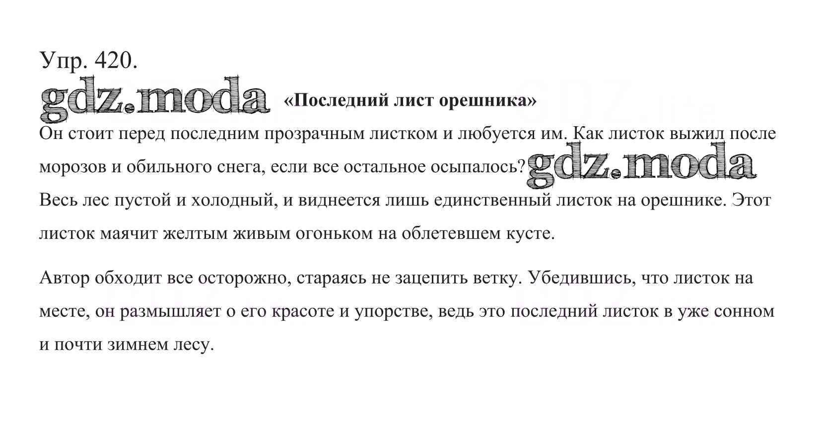 ОТВЕТ на задание № 420 Учебник по Русскому языку 5 класс Баранов