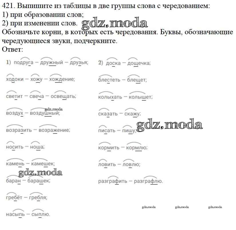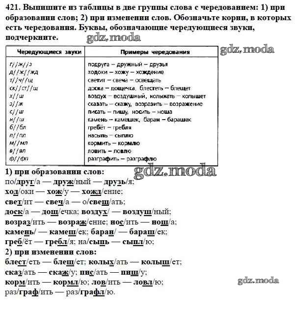 ОТВЕТ на задание № 421 Учебник по Русскому языку 5 класс Баранов