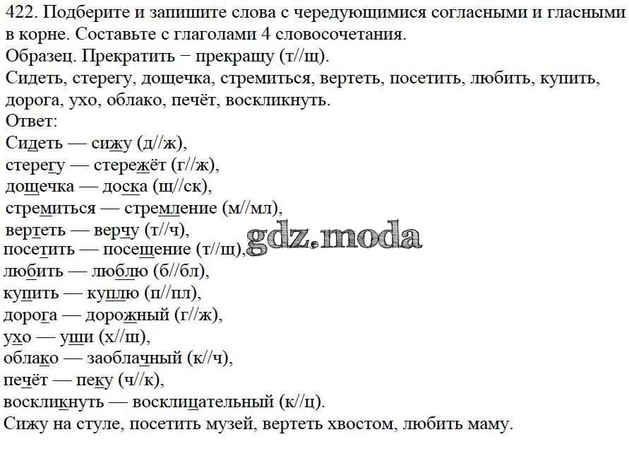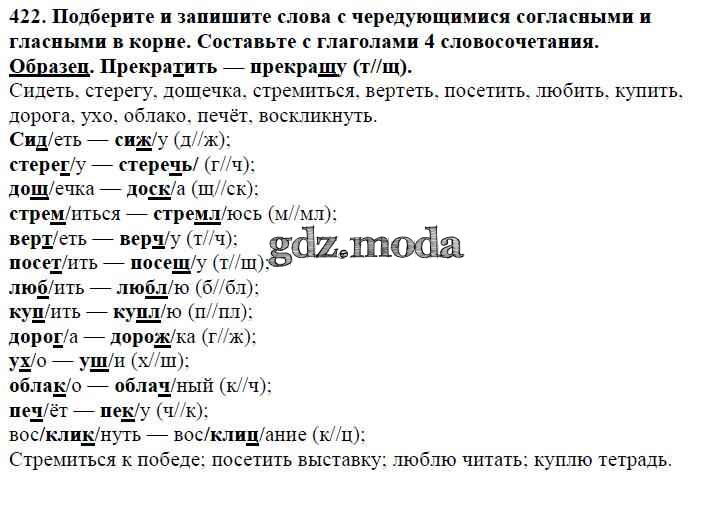 ОТВЕТ на задание № 422 Учебник по Русскому языку 5 класс Баранов