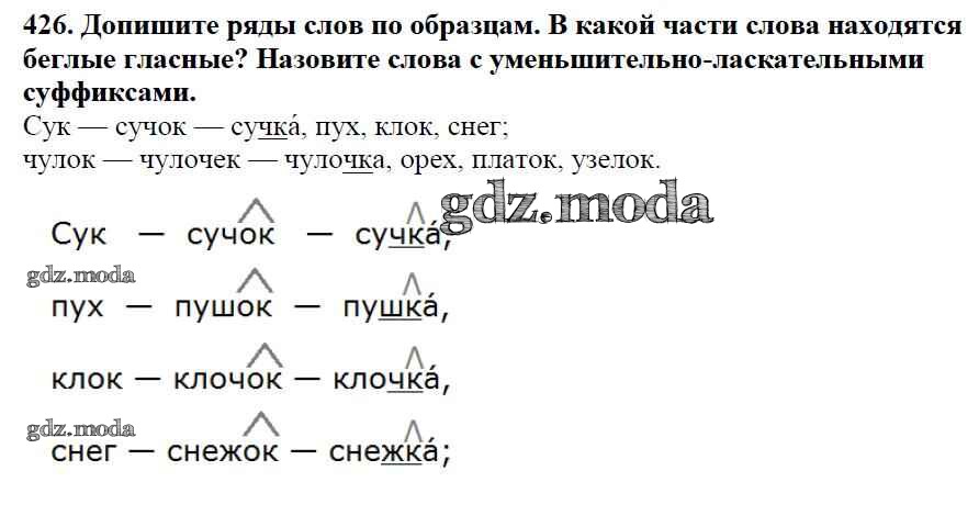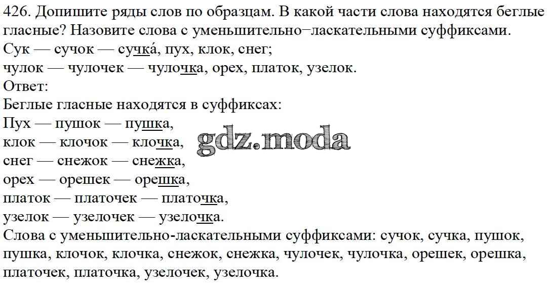 ОТВЕТ на задание № 426 Учебник по Русскому языку 5 класс Баранов
