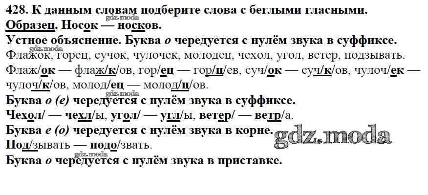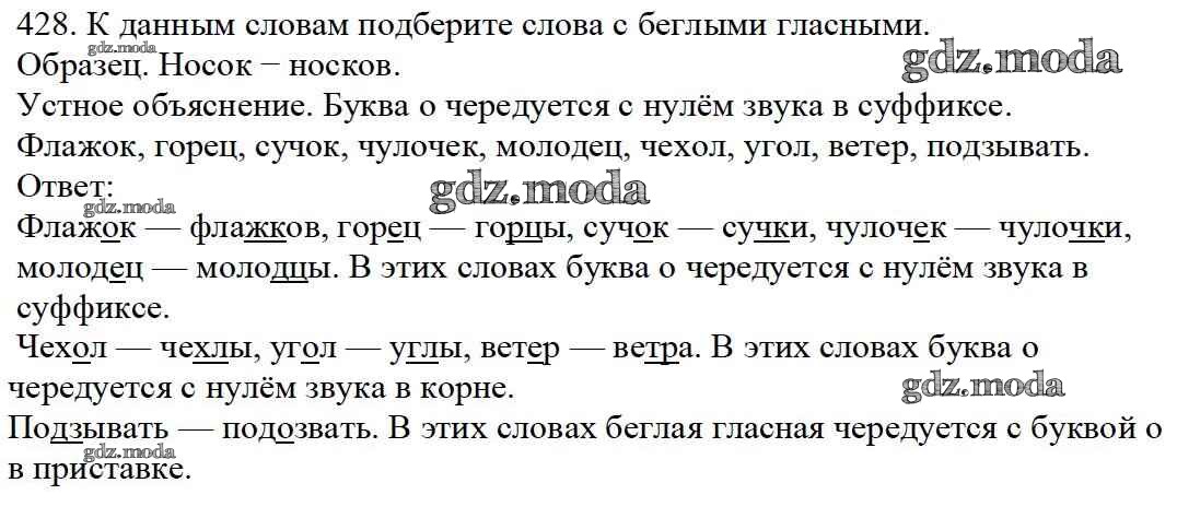 ОТВЕТ на задание № 428 Учебник по Русскому языку 5 класс Баранов