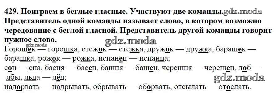 ОТВЕТ на задание № 429 Учебник по Русскому языку 5 класс Баранов