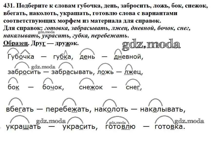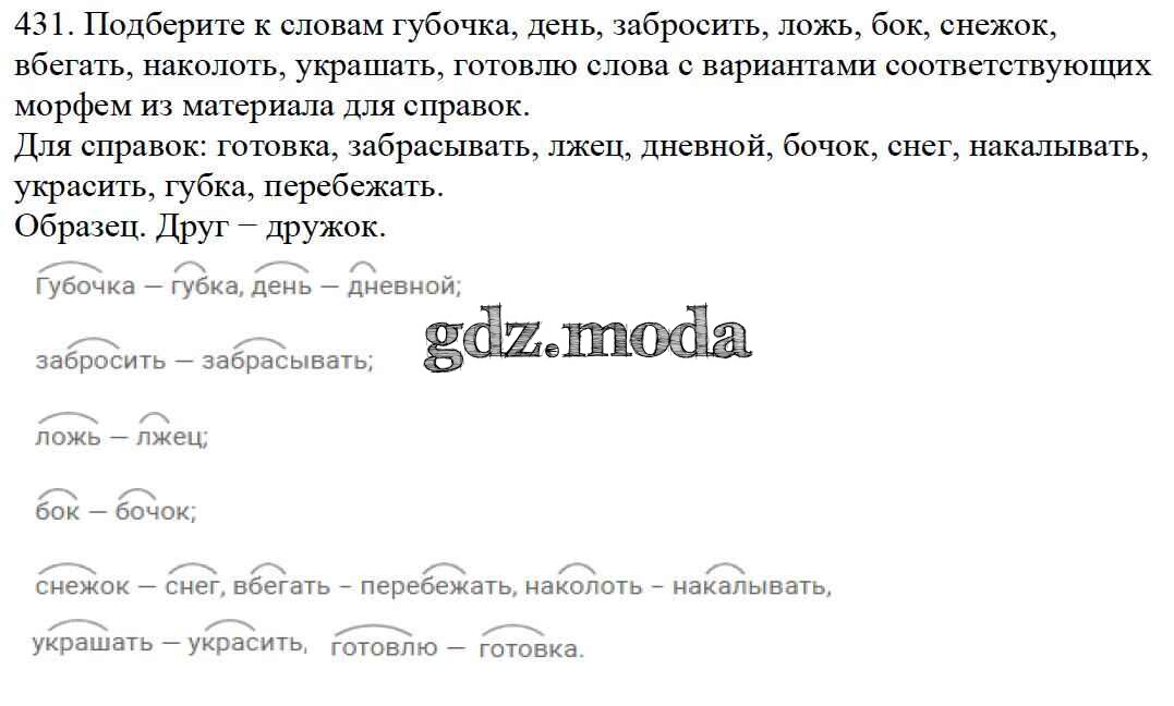 ОТВЕТ на задание № 431 Учебник по Русскому языку 5 класс Баранов