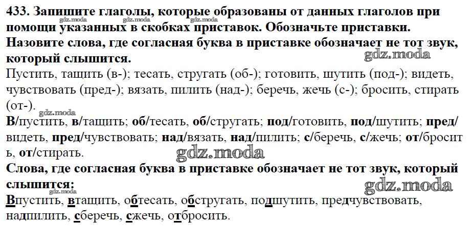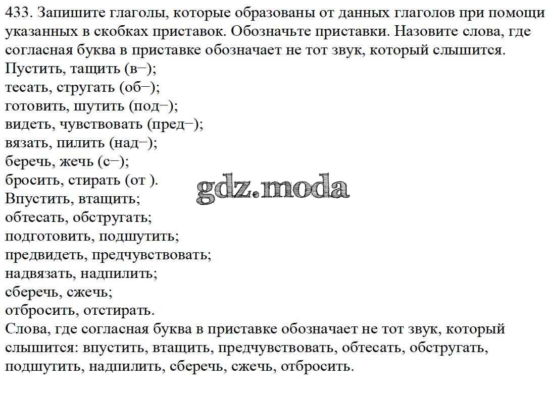 ОТВЕТ на задание № 433 Учебник по Русскому языку 5 класс Баранов
