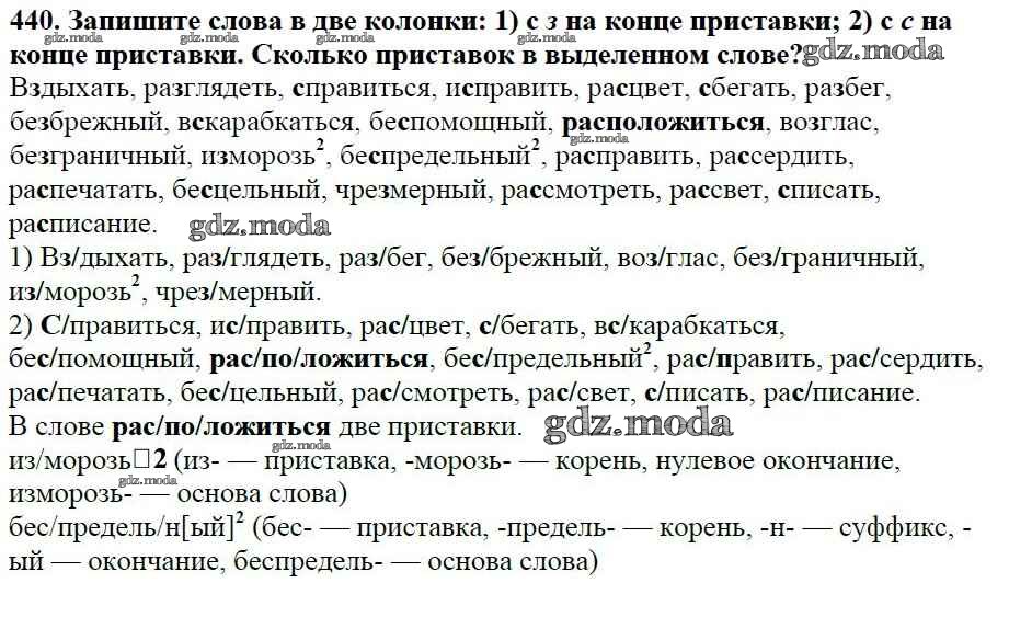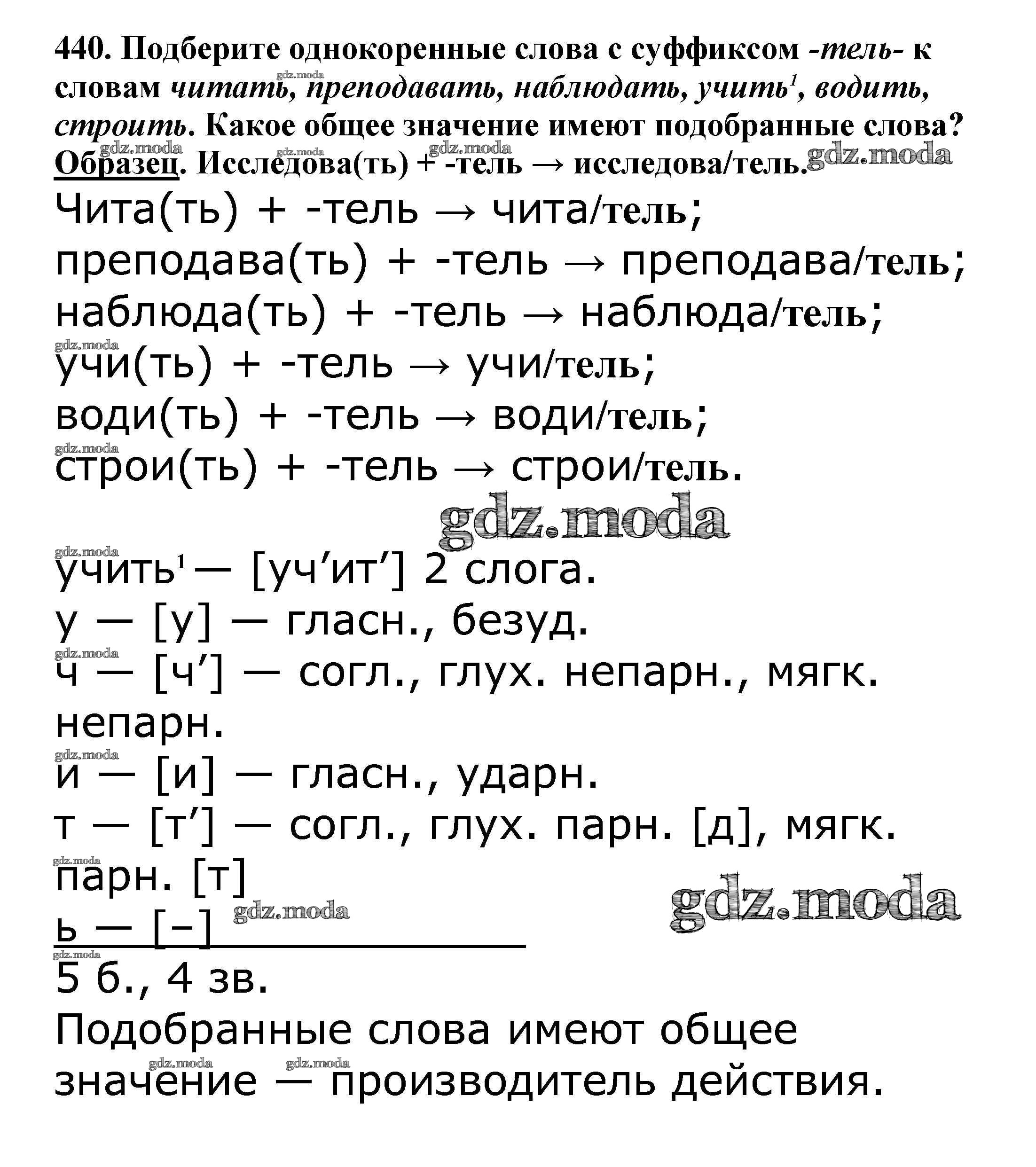 ОТВЕТ на задание № 440 Учебник по Русскому языку 5 класс Баранов