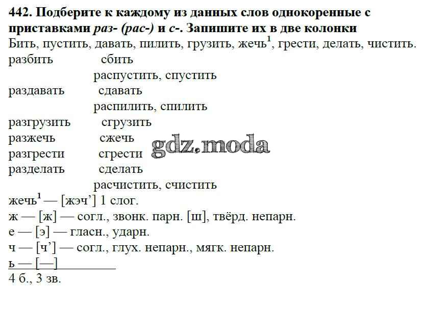 ОТВЕТ на задание № 442 Учебник по Русскому языку 5 класс Баранов