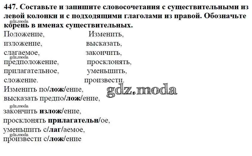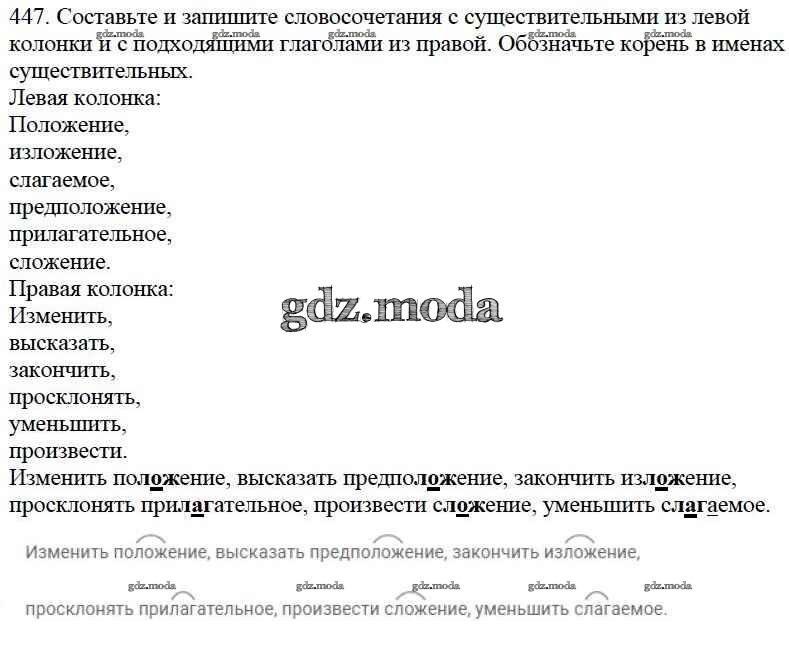ОТВЕТ на задание № 447 Учебник по Русскому языку 5 класс Баранов