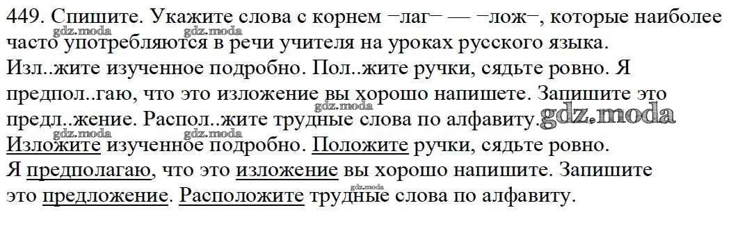 ОТВЕТ на задание № 449 Учебник по Русскому языку 5 класс Баранов