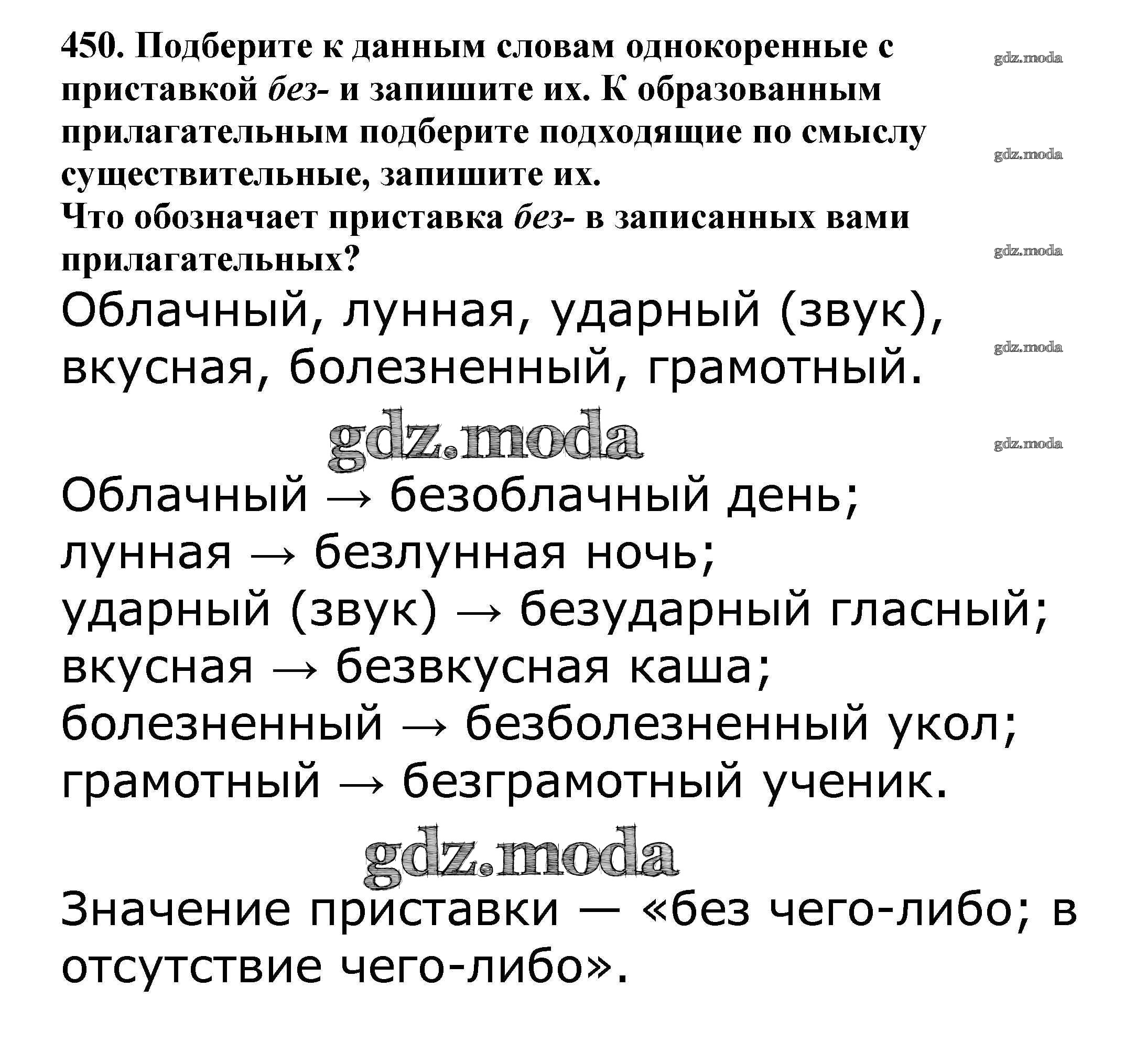 ОТВЕТ на задание № 450 Учебник по Русскому языку 5 класс Баранов