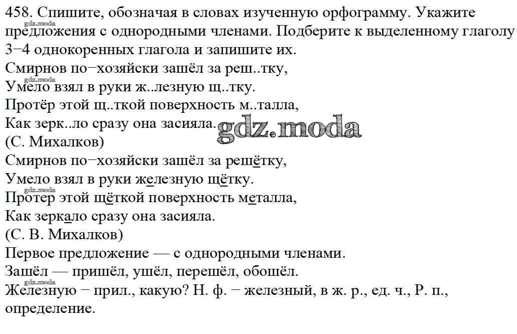 ОТВЕТ на задание № 458 Учебник по Русскому языку 5 класс Баранов