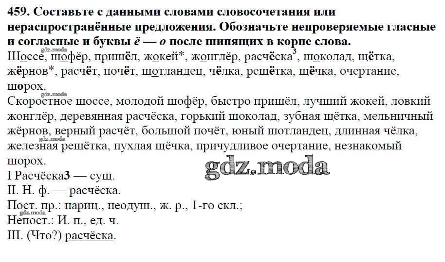 ОТВЕТ на задание № 459 Учебник по Русскому языку 5 класс Баранов