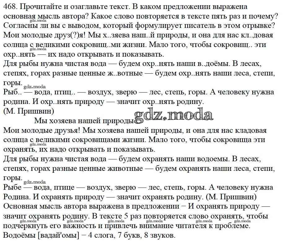 ОТВЕТ на задание № 468 Учебник по Русскому языку 5 класс Баранов