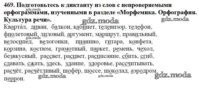 ОТВЕТ на задание № 469 Учебник по Русскому языку 5 класс Баранов