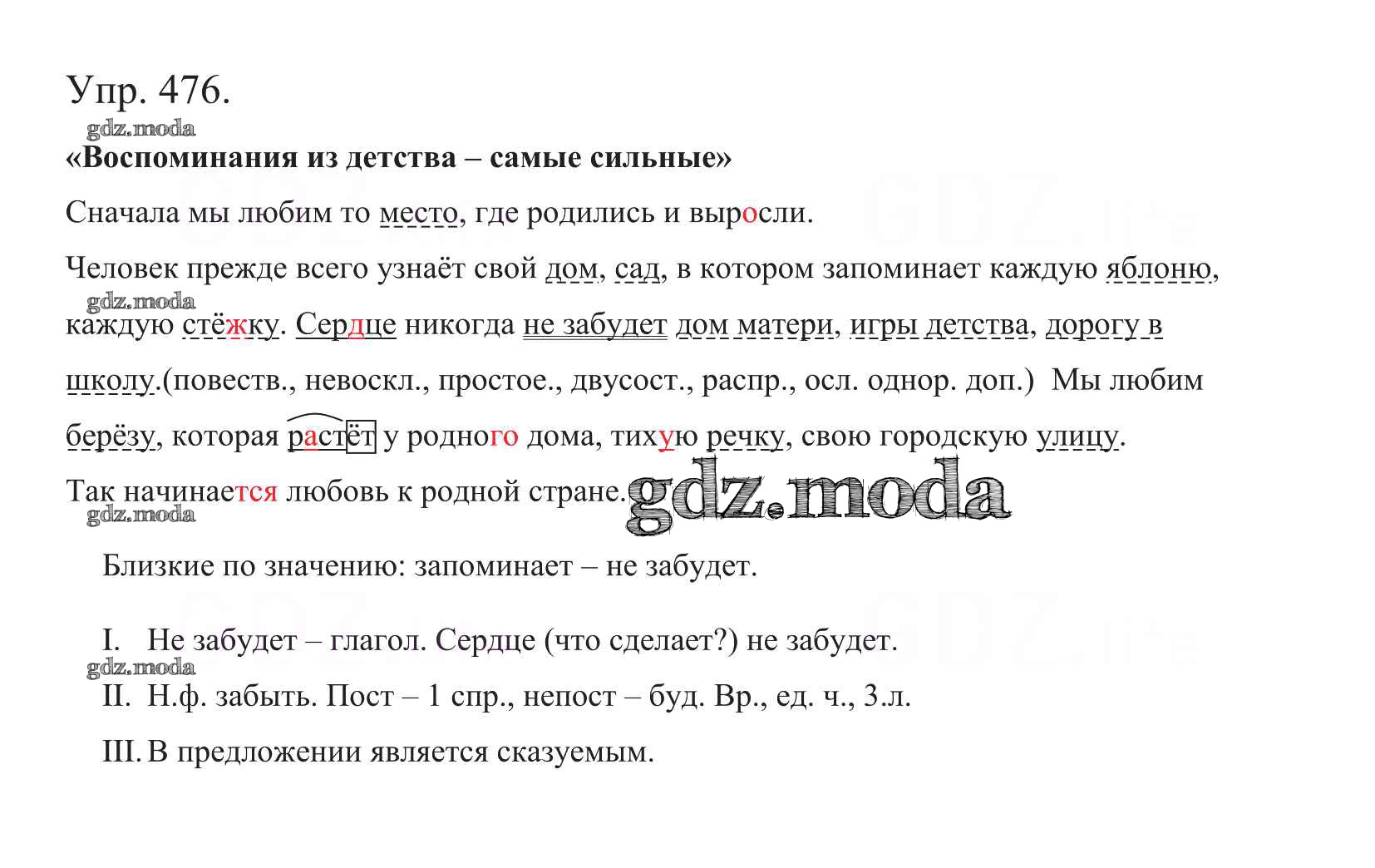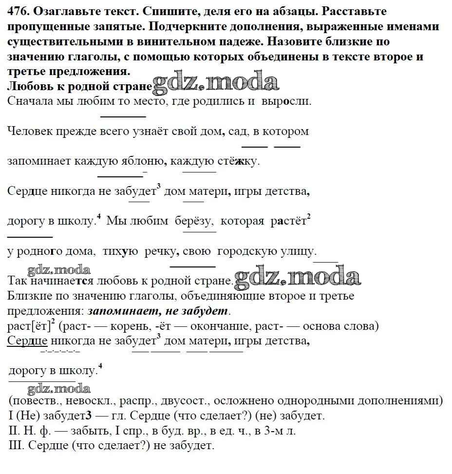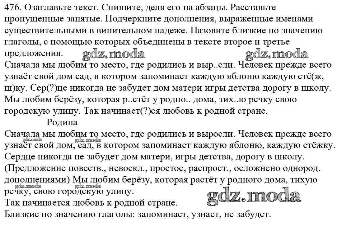 ОТВЕТ на задание № 476 Учебник по Русскому языку 5 класс Баранов