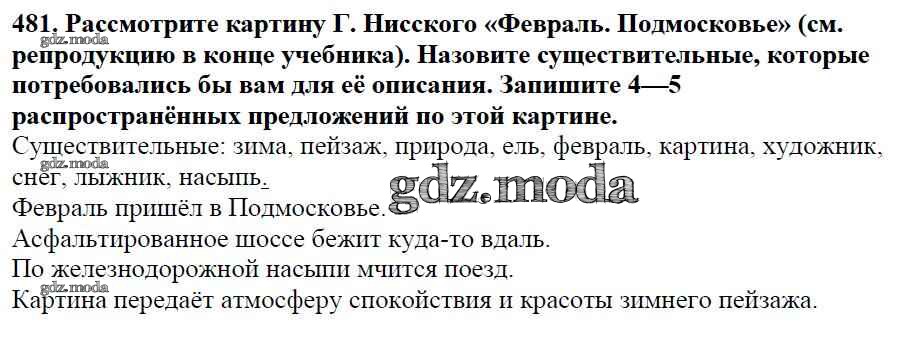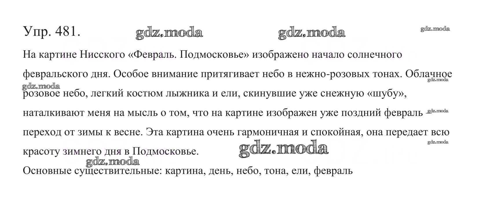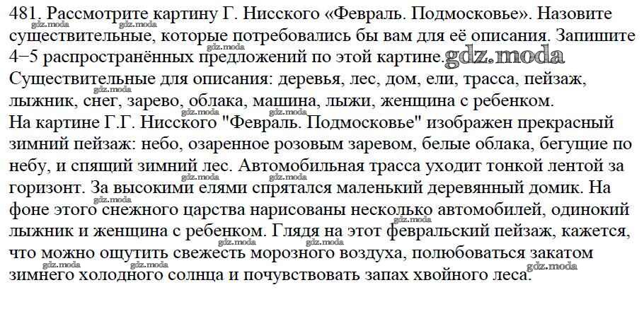 ОТВЕТ на задание № 481 Учебник по Русскому языку 5 класс Баранов