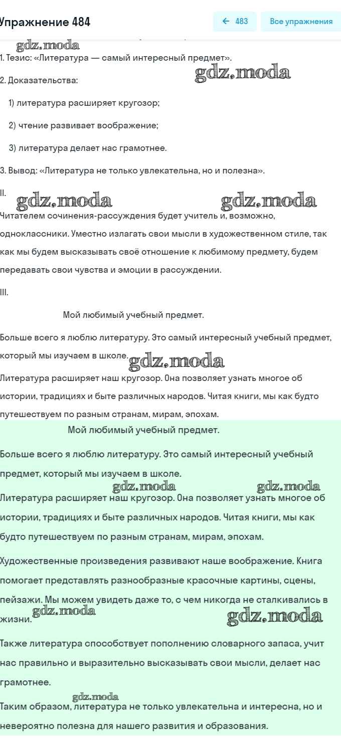 ОТВЕТ на задание № 484 Учебник по Русскому языку 5 класс Баранов