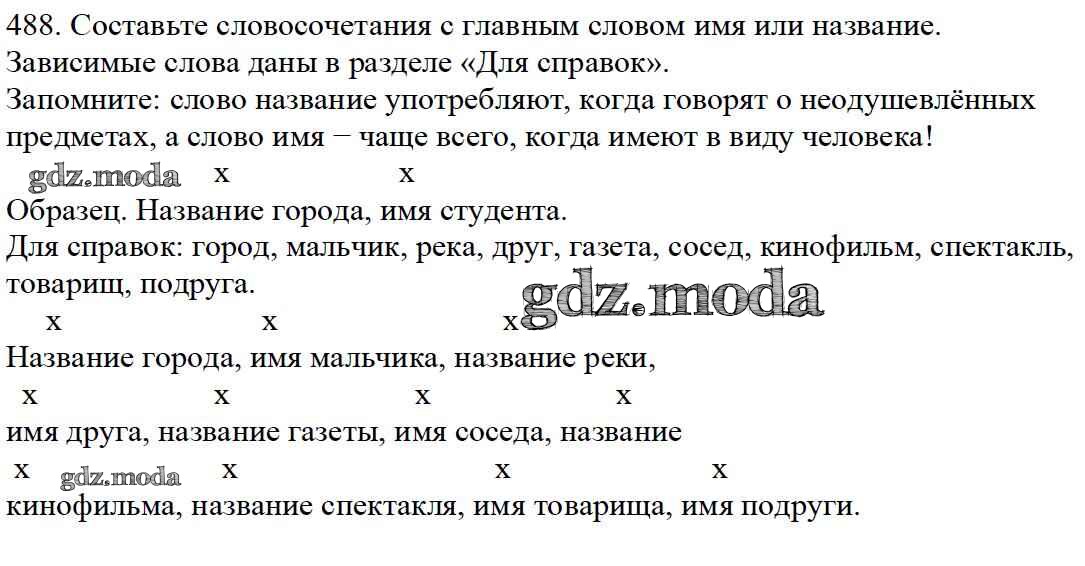 ОТВЕТ на задание № 488 Учебник по Русскому языку 5 класс Баранов