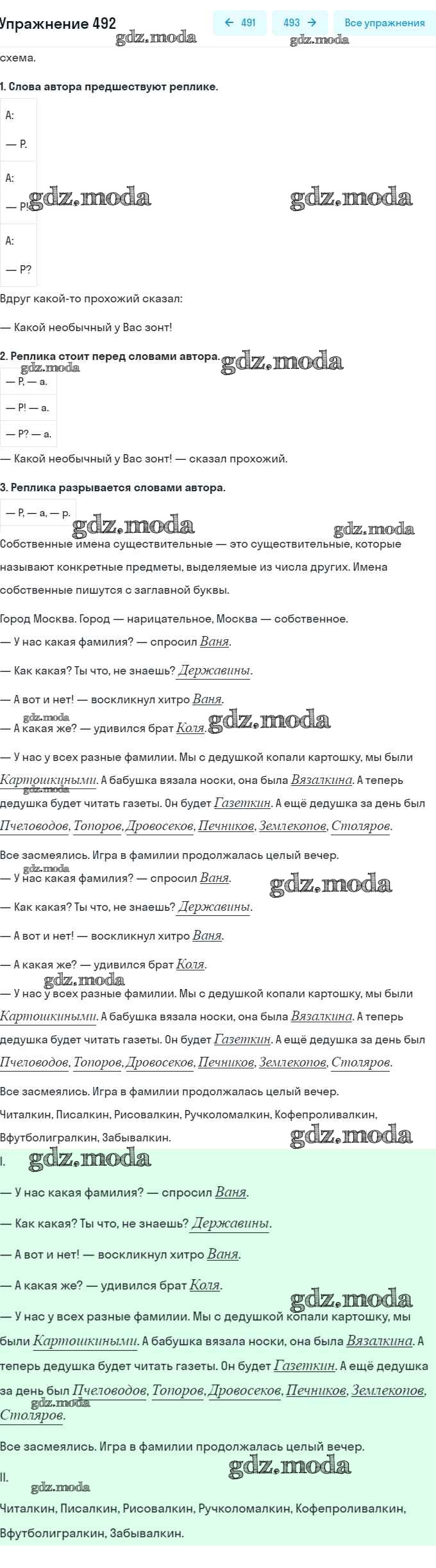 ОТВЕТ на задание № 492 Учебник по Русскому языку 5 класс Баранов