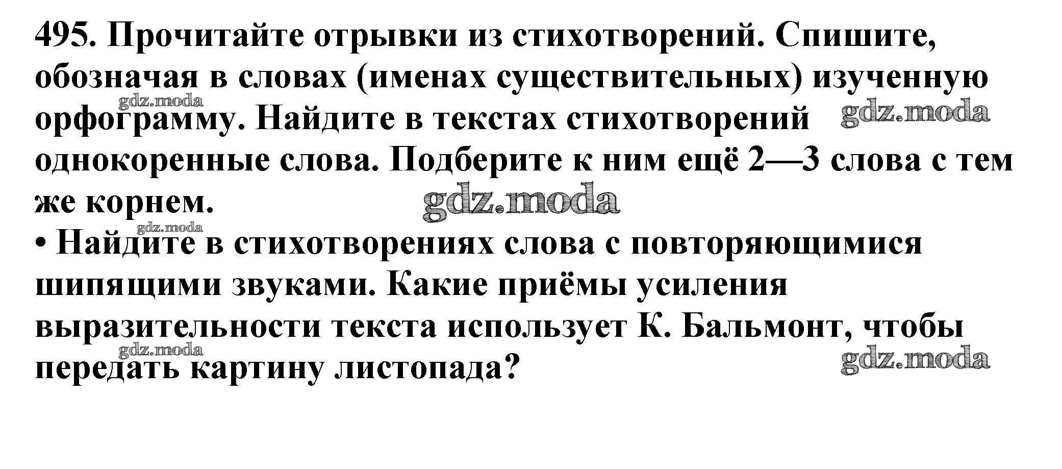 ОТВЕТ на задание № 495 Учебник по Русскому языку 5 класс Баранов