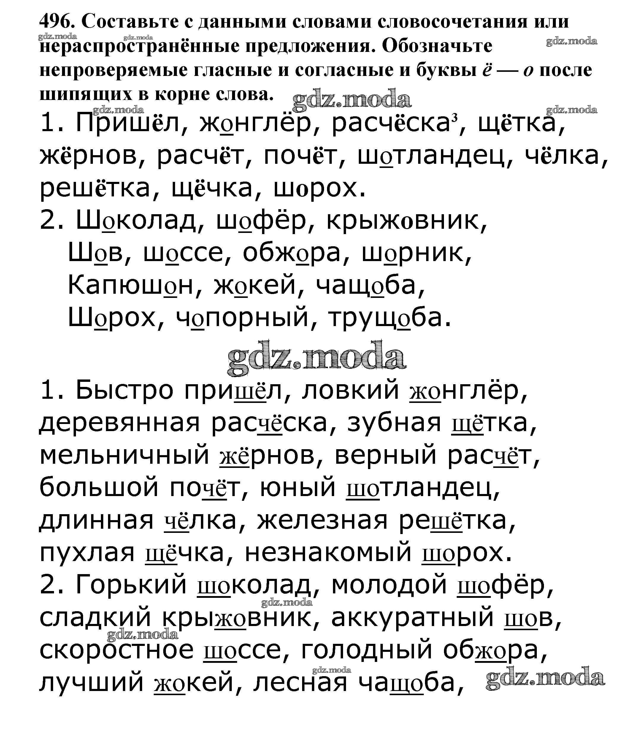 ОТВЕТ на задание № 496 Учебник по Русскому языку 5 класс Баранов