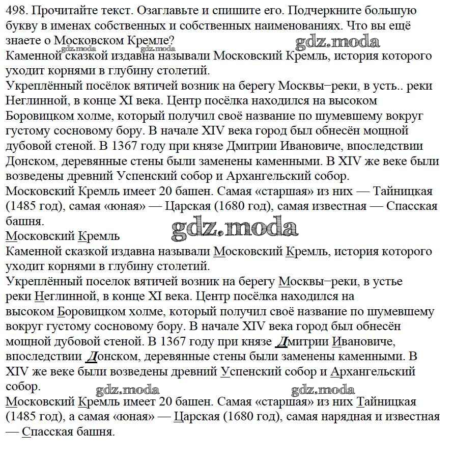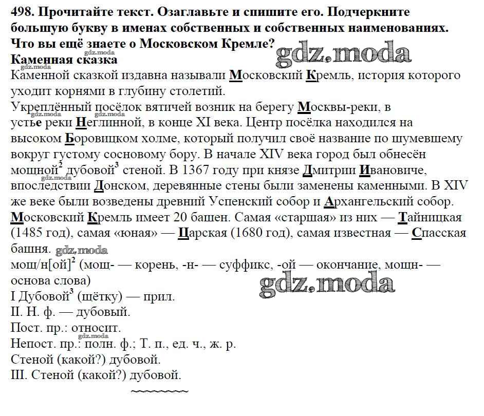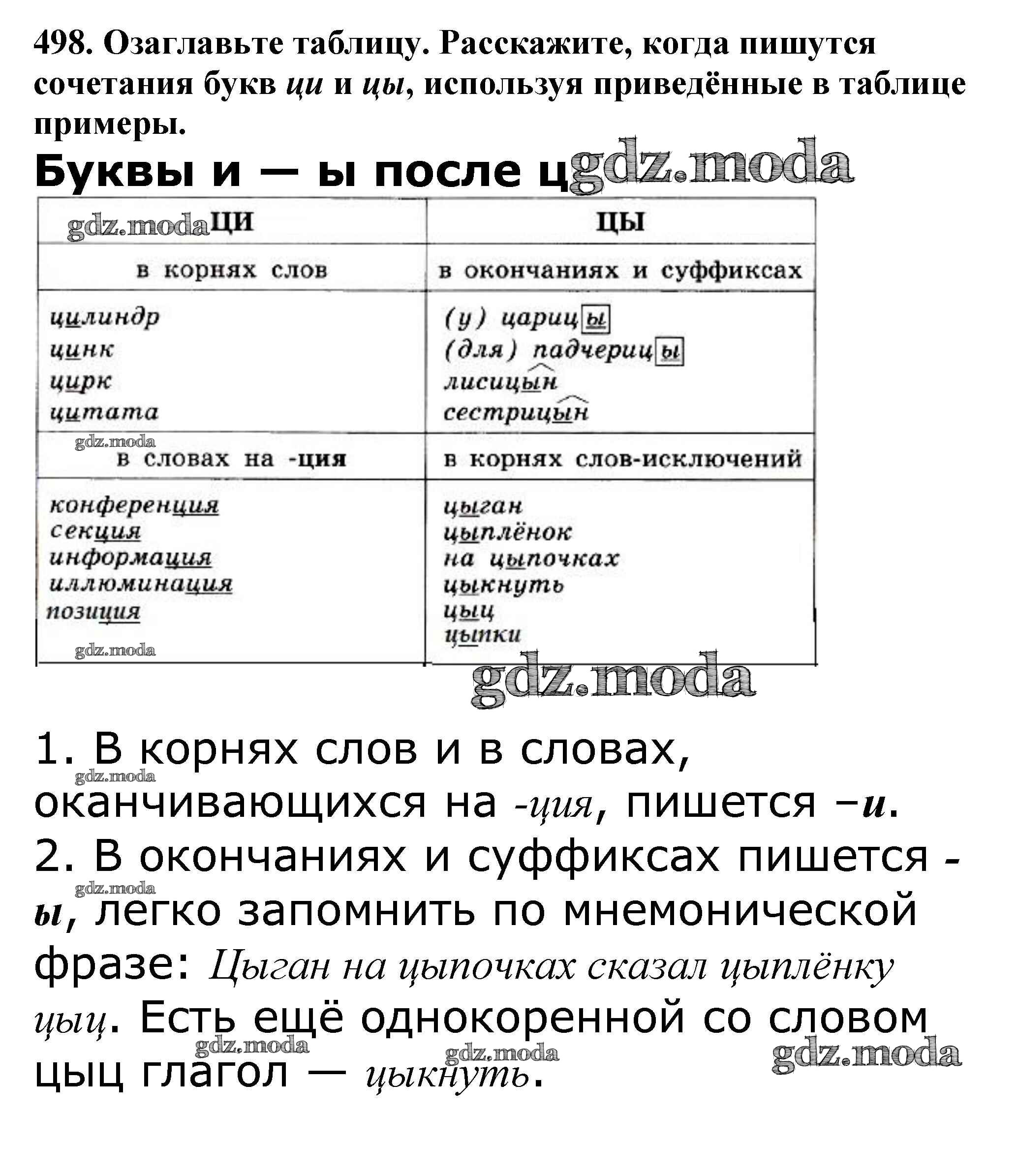 ОТВЕТ на задание № 498 Учебник по Русскому языку 5 класс Баранов