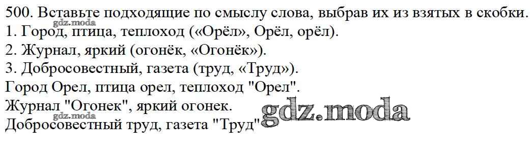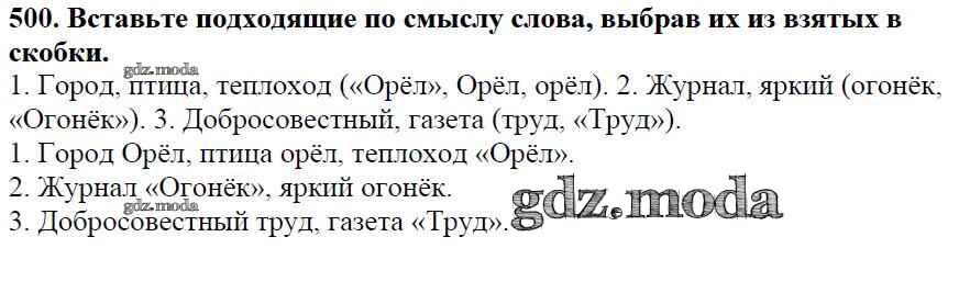 ОТВЕТ на задание № 500 Учебник по Русскому языку 5 класс Баранов