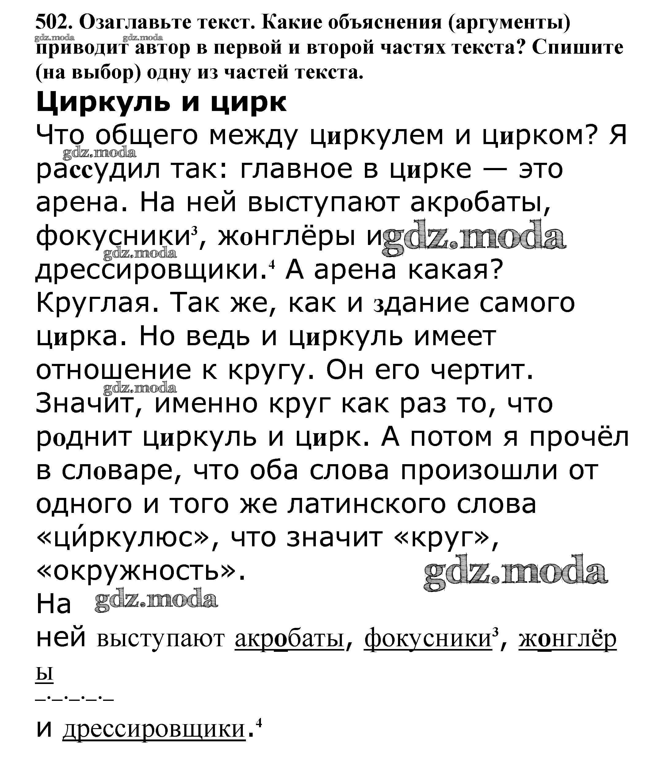 ОТВЕТ на задание № 502 Учебник по Русскому языку 5 класс Баранов
