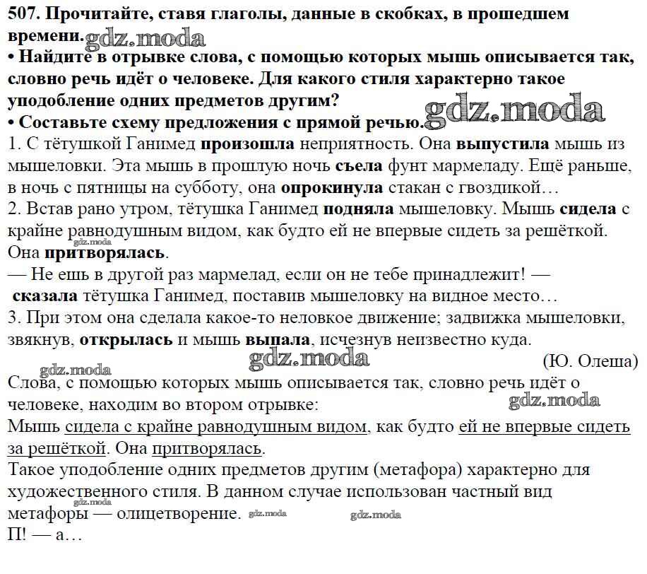 ОТВЕТ на задание № 507 Учебник по Русскому языку 5 класс Баранов