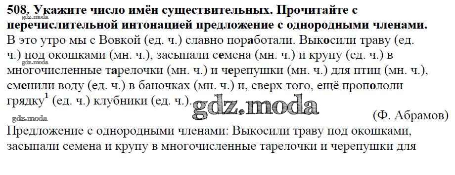 ОТВЕТ на задание № 508 Учебник по Русскому языку 5 класс Баранов