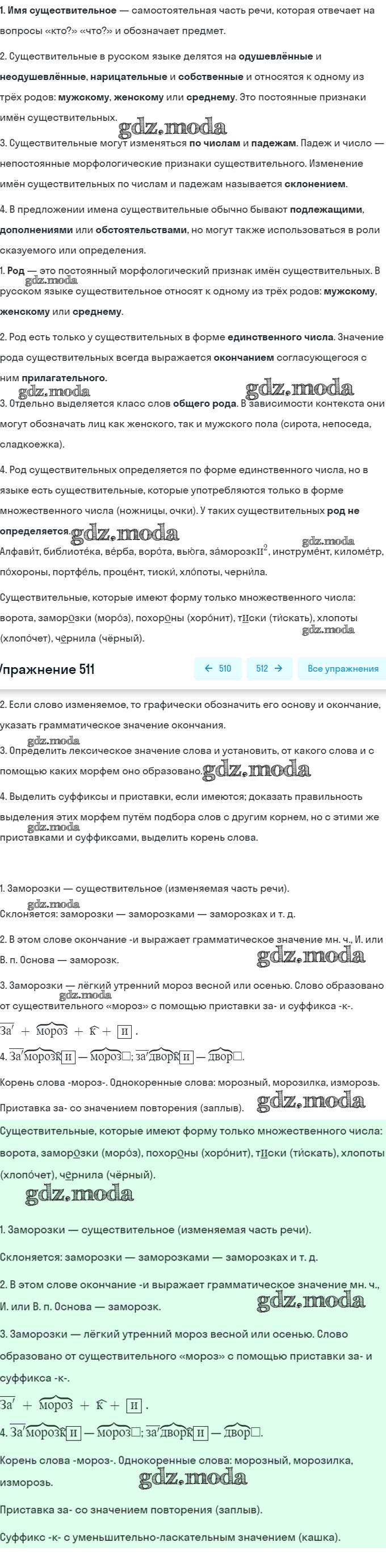ОТВЕТ на задание № 511 Учебник по Русскому языку 5 класс Баранов