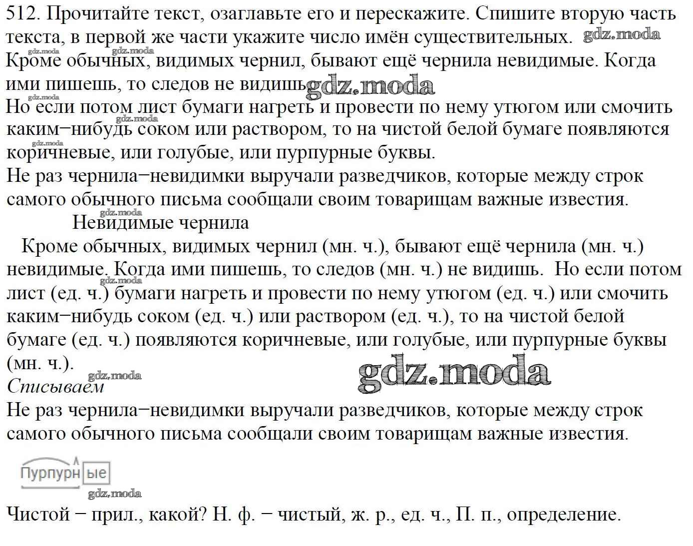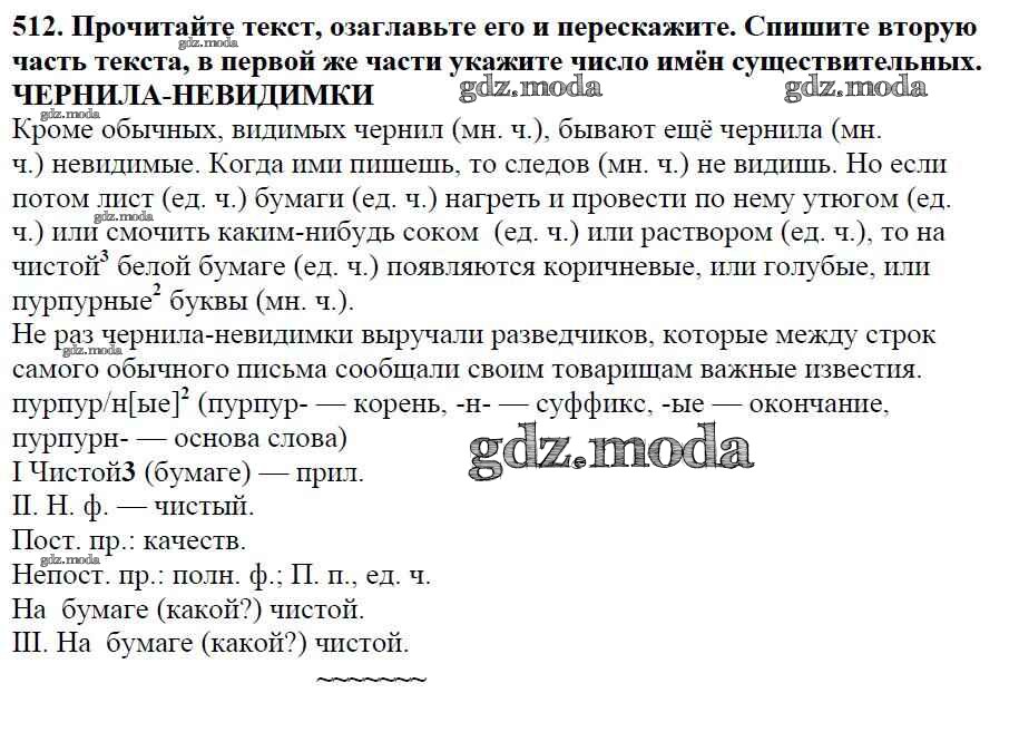 ОТВЕТ на задание № 512 Учебник по Русскому языку 5 класс Баранов