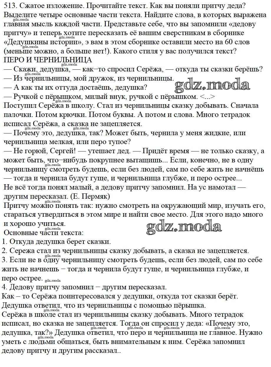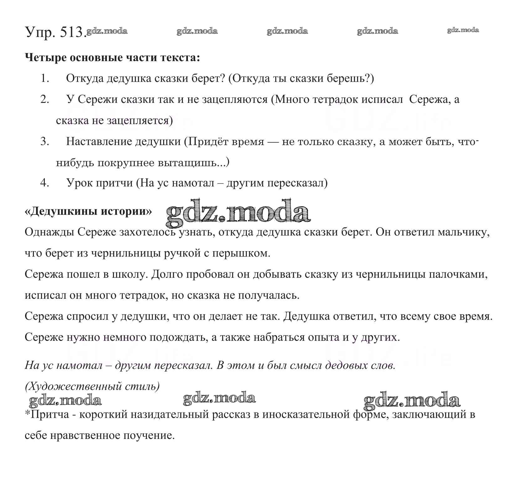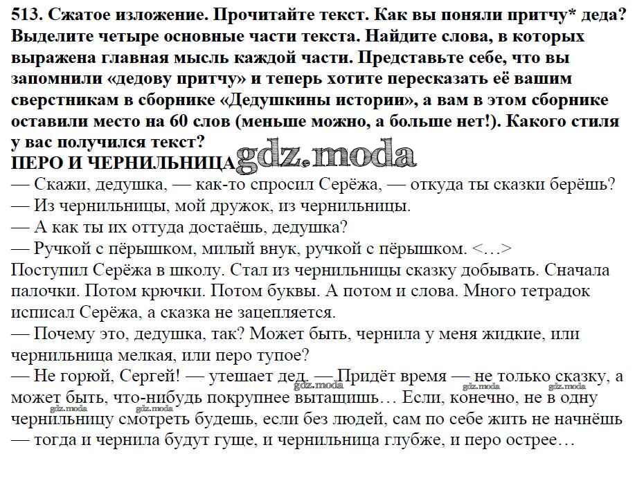 ОТВЕТ на задание № 513 Учебник по Русскому языку 5 класс Баранов