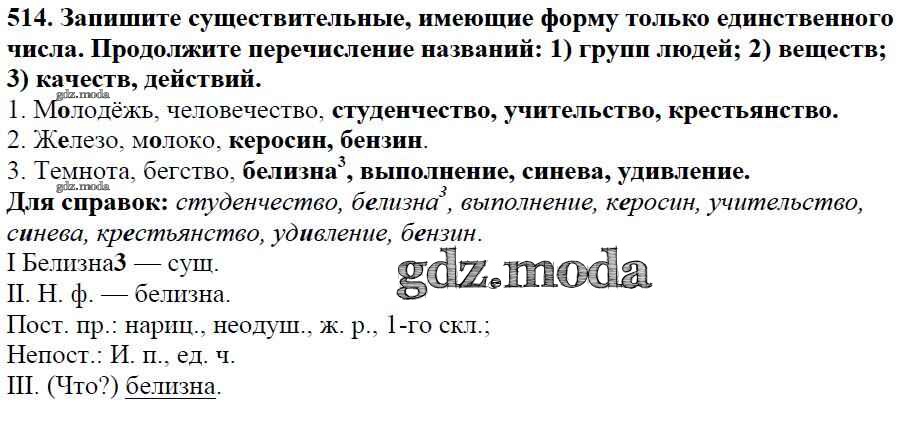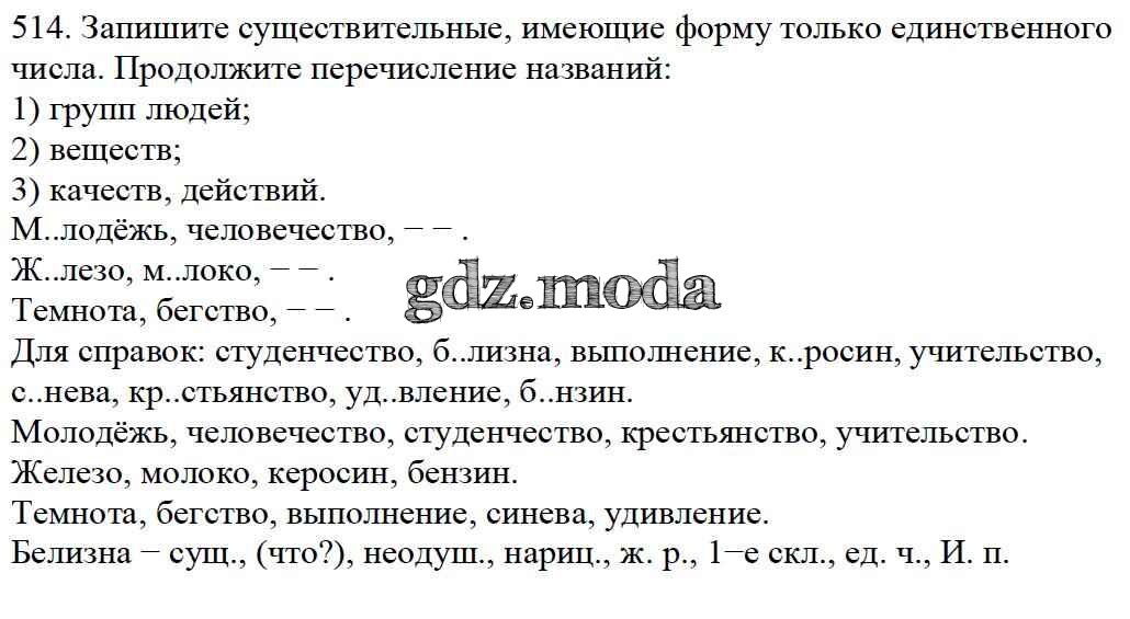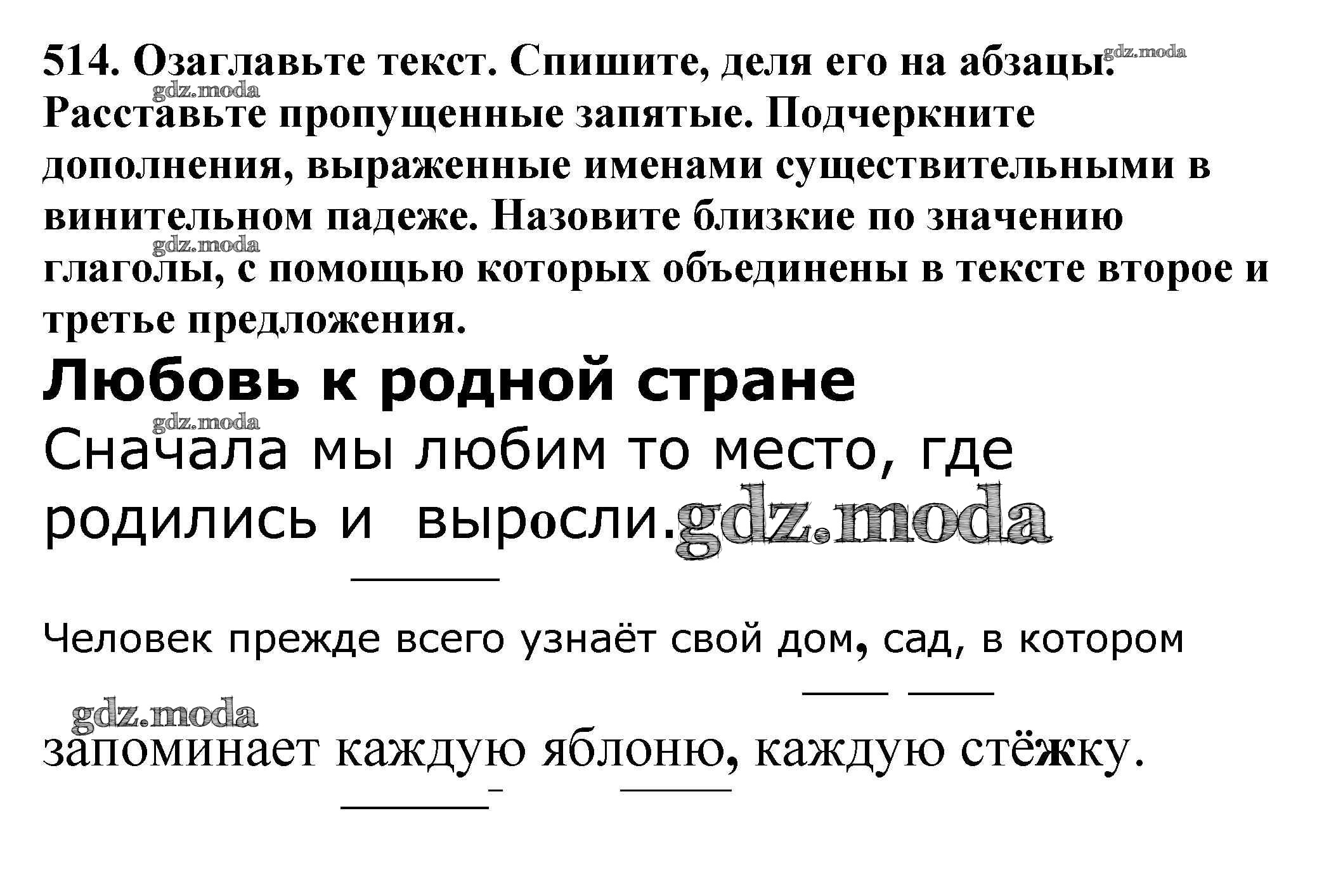 ОТВЕТ на задание № 514 Учебник по Русскому языку 5 класс Баранов