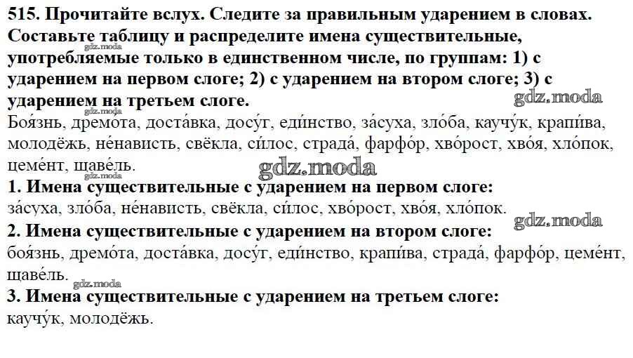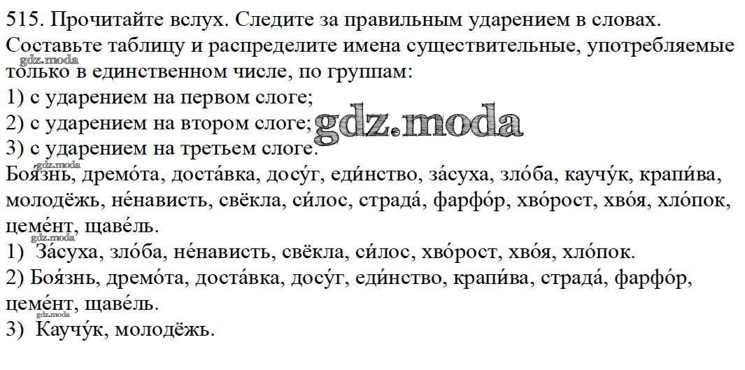ОТВЕТ на задание № 515 Учебник по Русскому языку 5 класс Баранов
