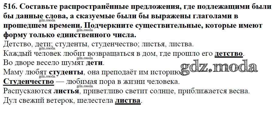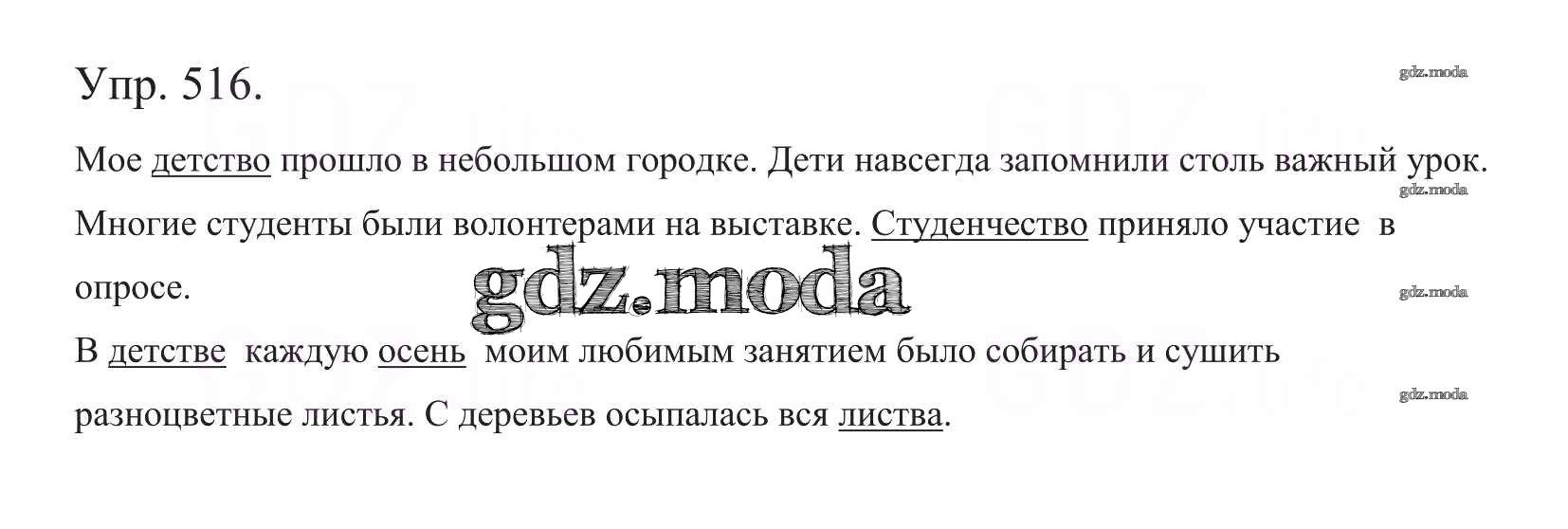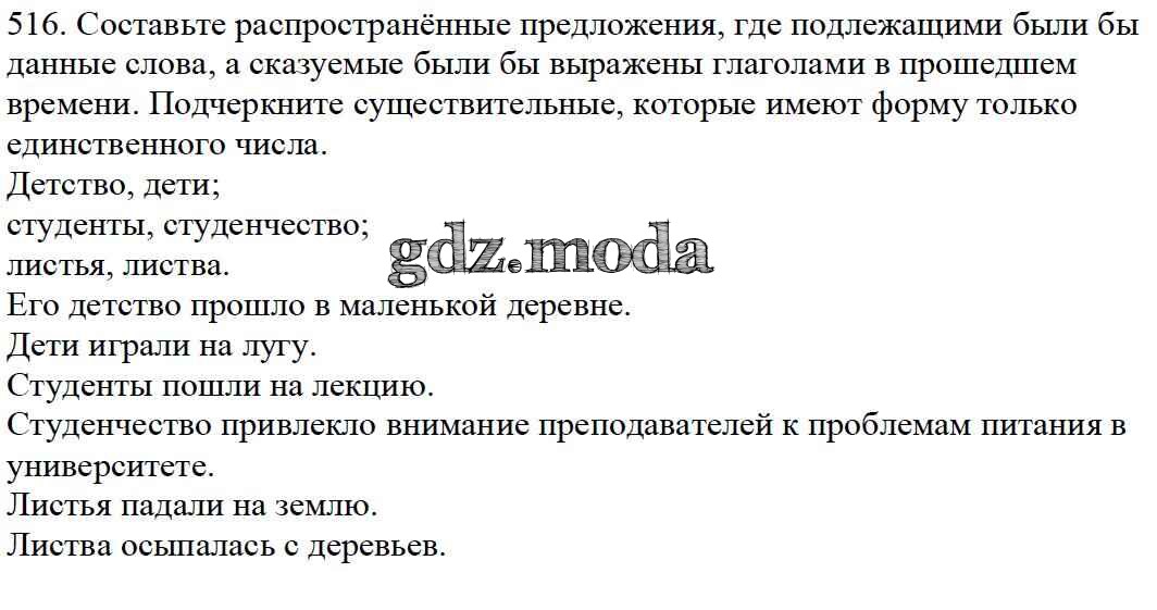 ОТВЕТ на задание № 516 Учебник по Русскому языку 5 класс Баранов