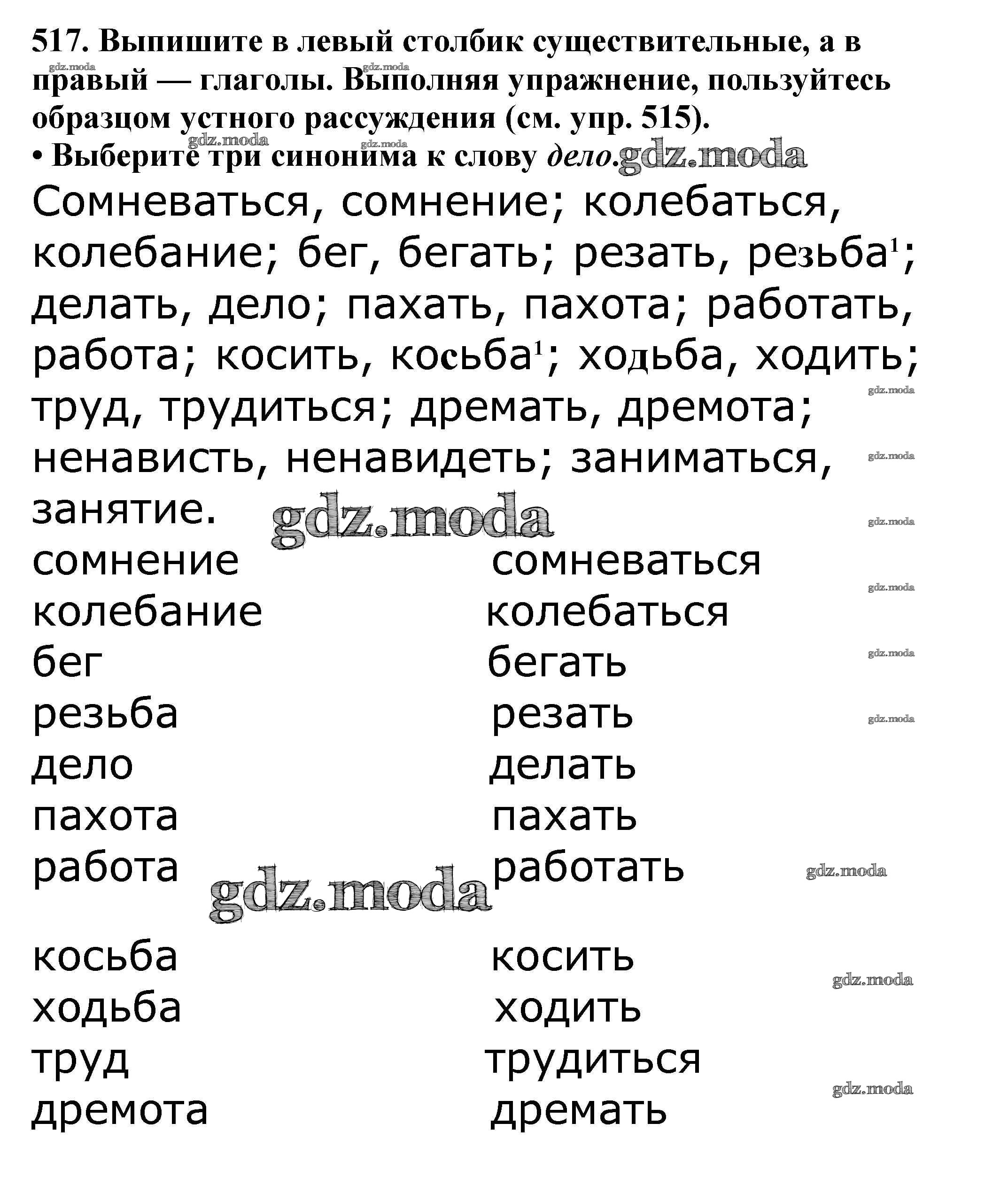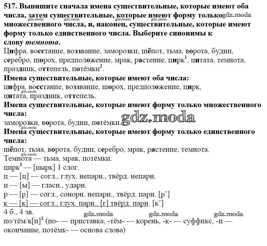 ОТВЕТ на задание № 517 Учебник по Русскому языку 5 класс Баранов