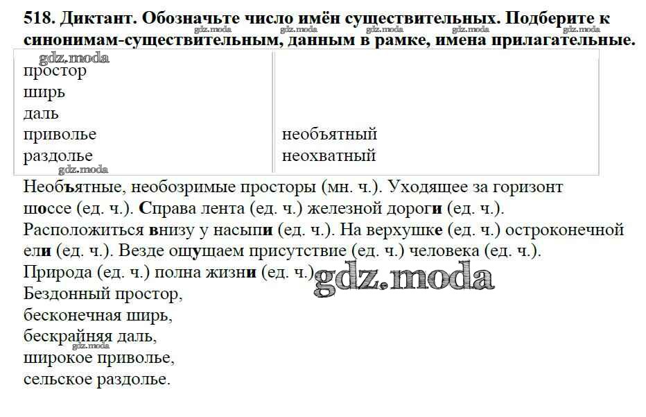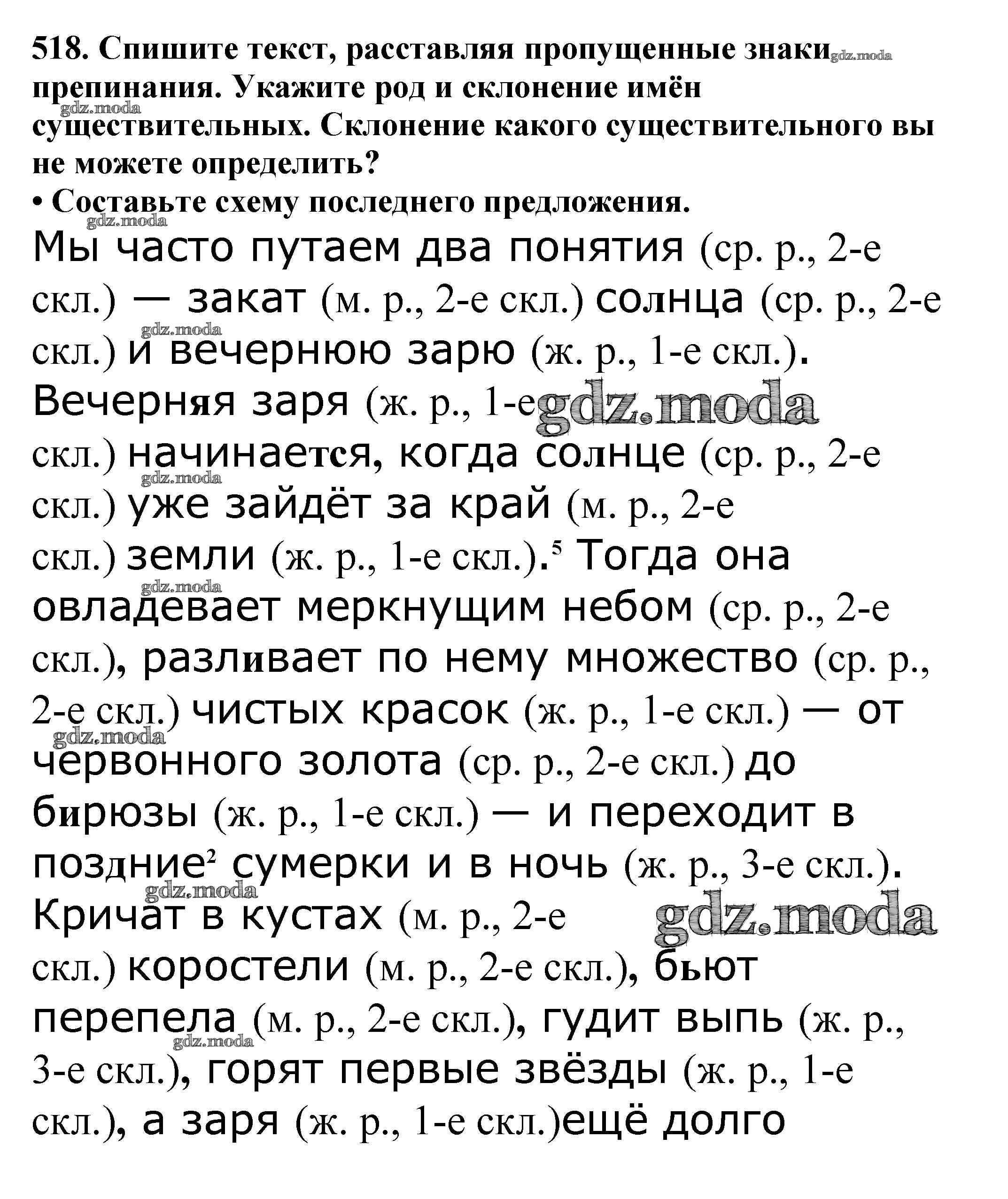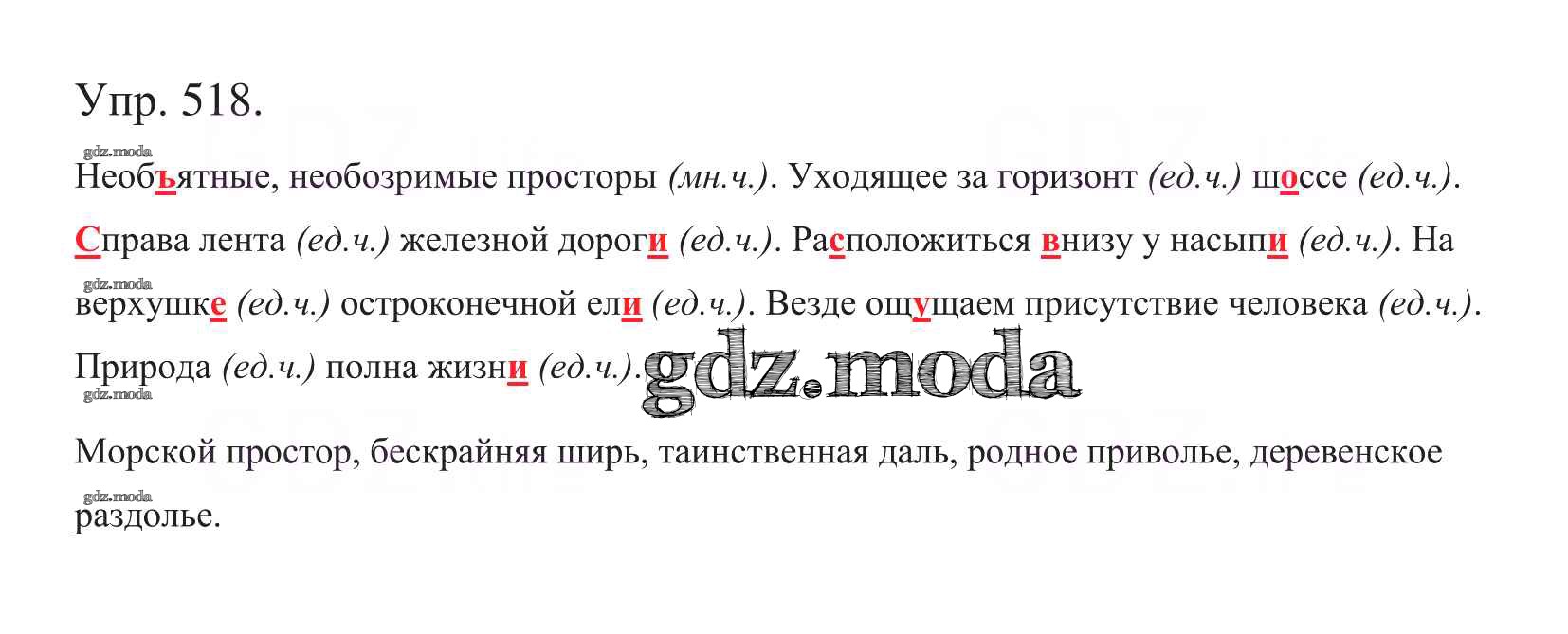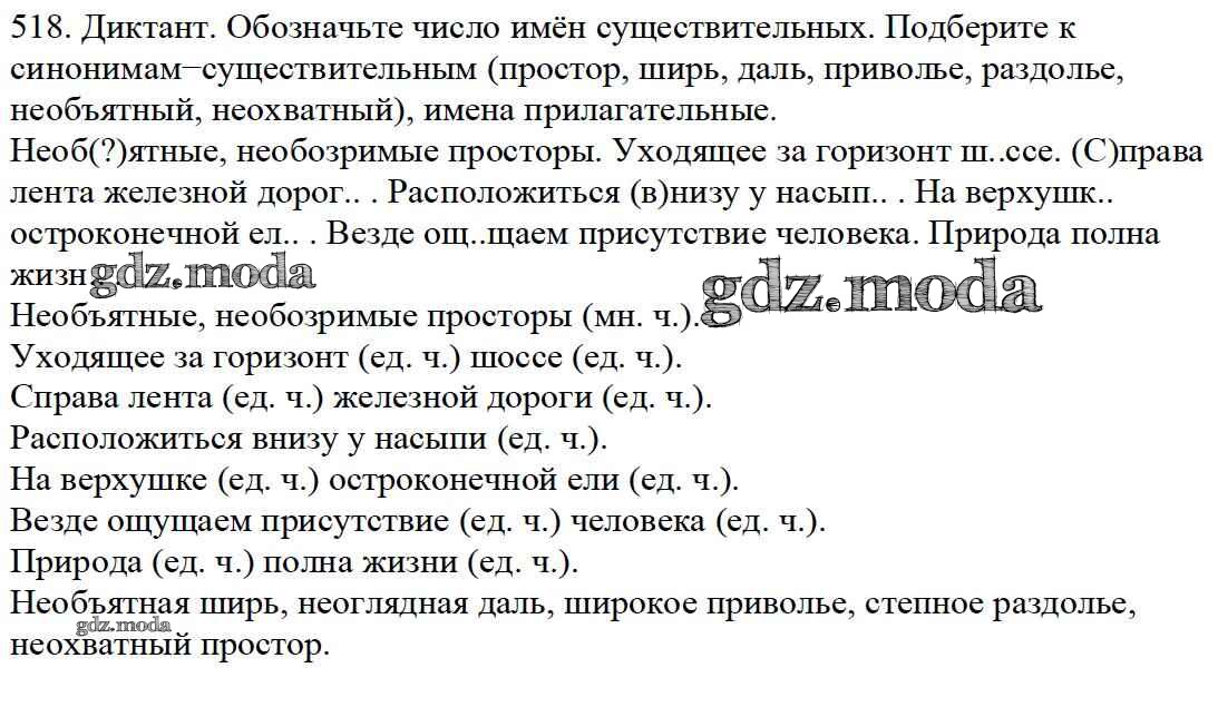 ОТВЕТ на задание № 518 Учебник по Русскому языку 5 класс Баранов