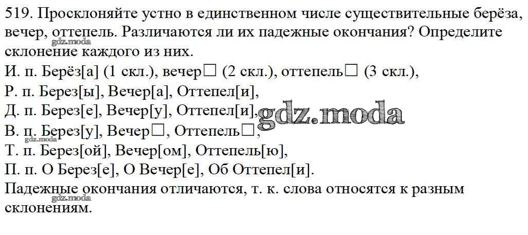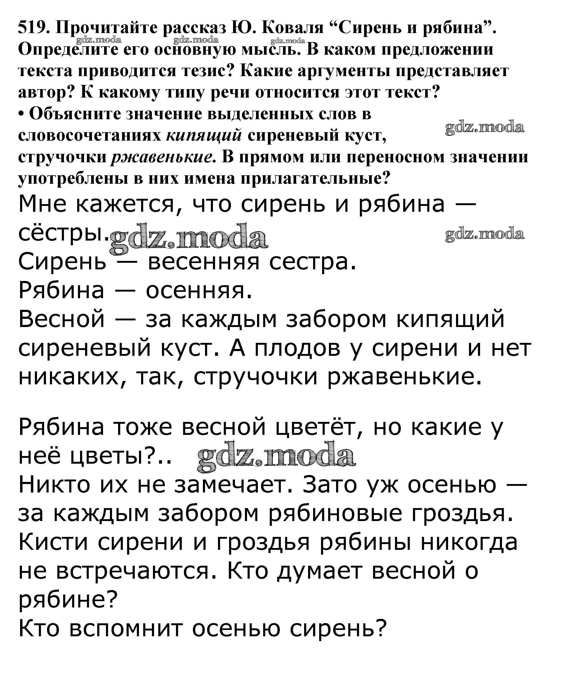 ОТВЕТ на задание № 519 Учебник по Русскому языку 5 класс Баранов