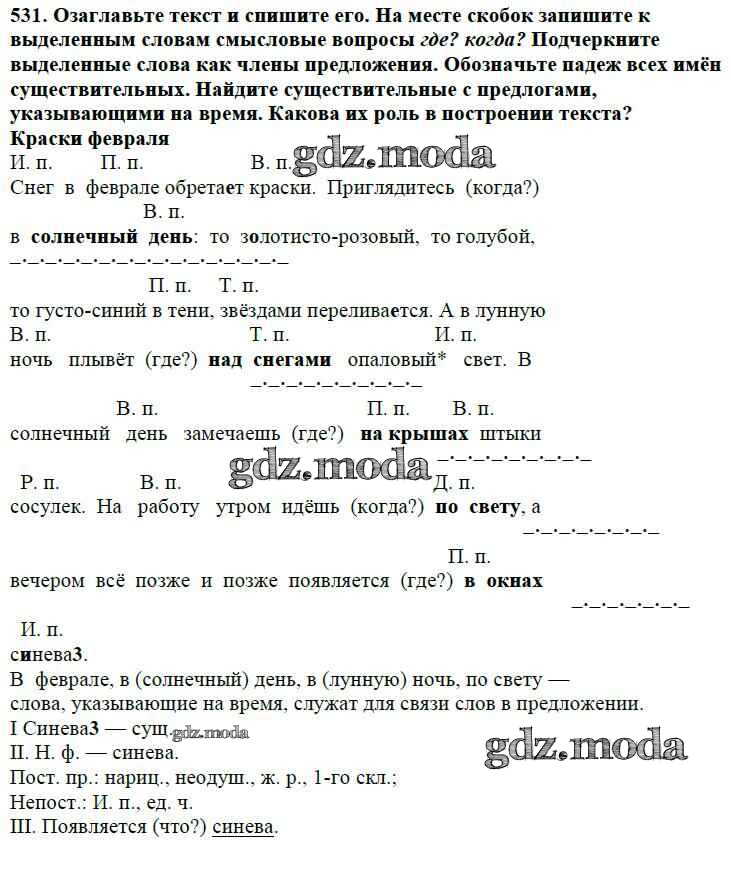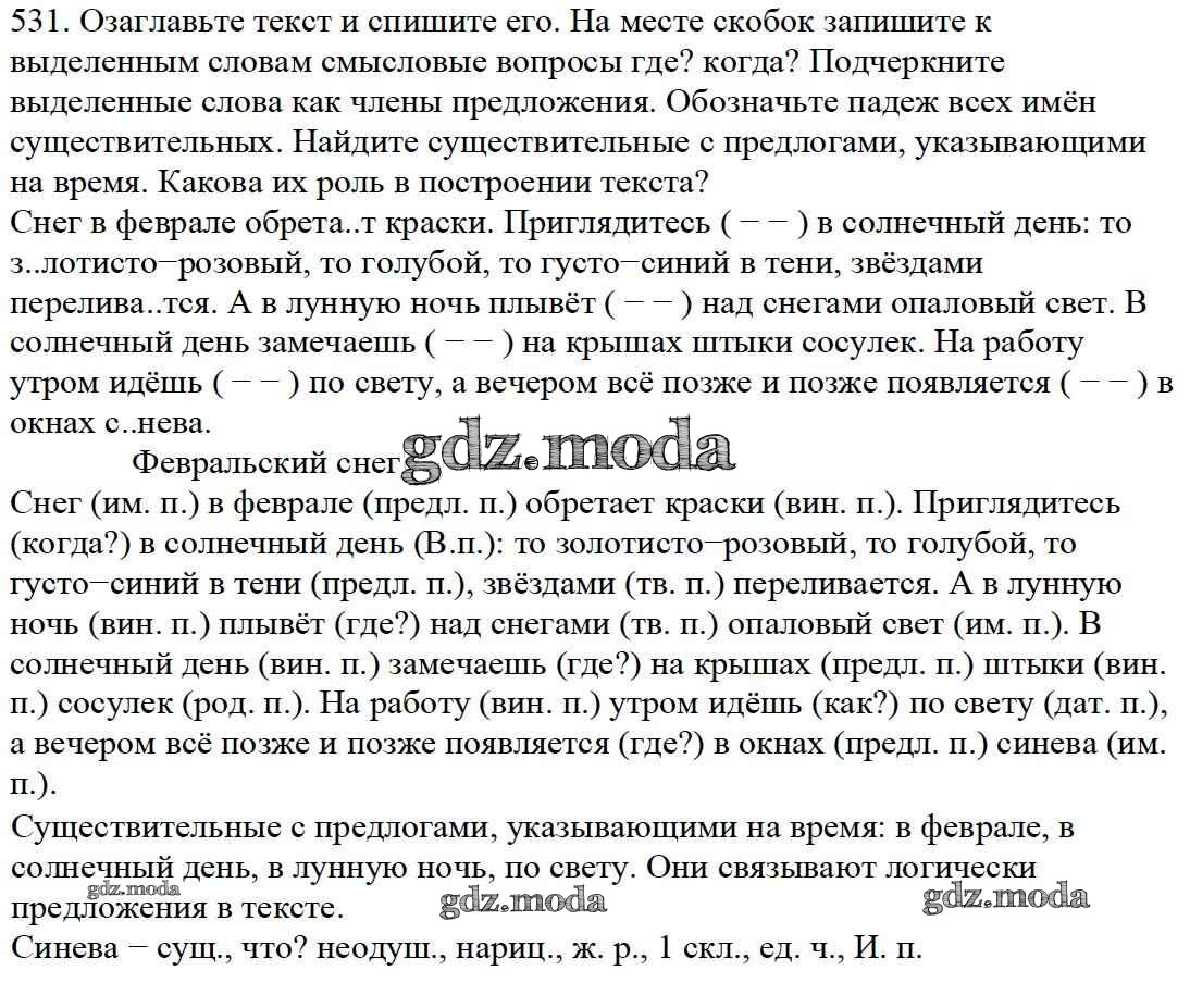 ОТВЕТ на задание № 531 Учебник по Русскому языку 5 класс Баранов