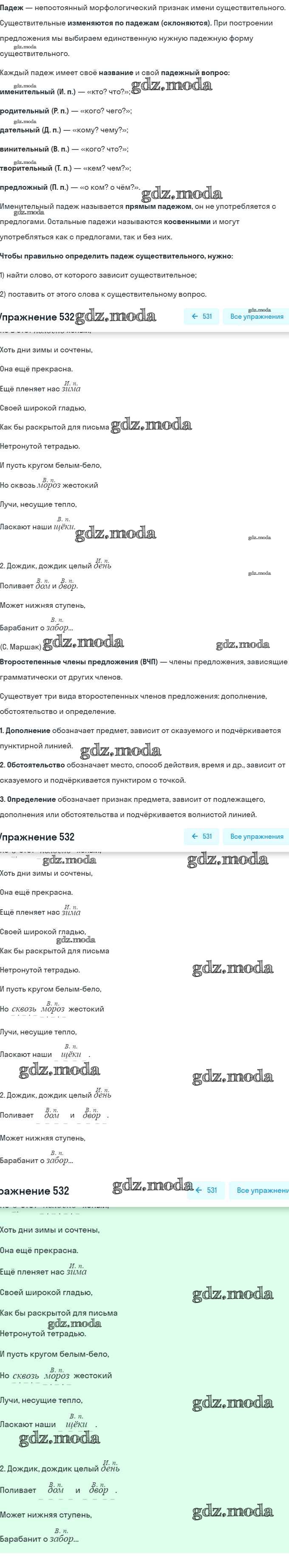 ГДЗ решение к заданию № 532 Русский язык 5 класс Ладыженская Т.А. Просвещение, Просвещение 2016, 2019 Часть 1, Часть 2 ФГОС бесплатно на гдз.мода!